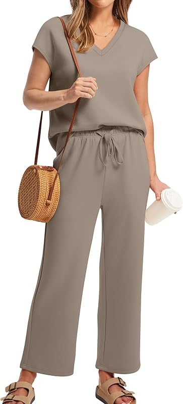 Ensemble détente femme chic – Chic and Bohemian Tenue Décontractée Femme Linen Ensemble Deux Pièces Pour Femme Co Ord Ensemble D'été La Maison Ensemble détente Eva SUMWON WOMEN Ensemble deux pièces de tenue de détente pour femmes avec Top court à capuche et leggings capri à pois. Ensemble assorti avec capuche à cordon et manches longues, idéal pour la Saint-Valentin