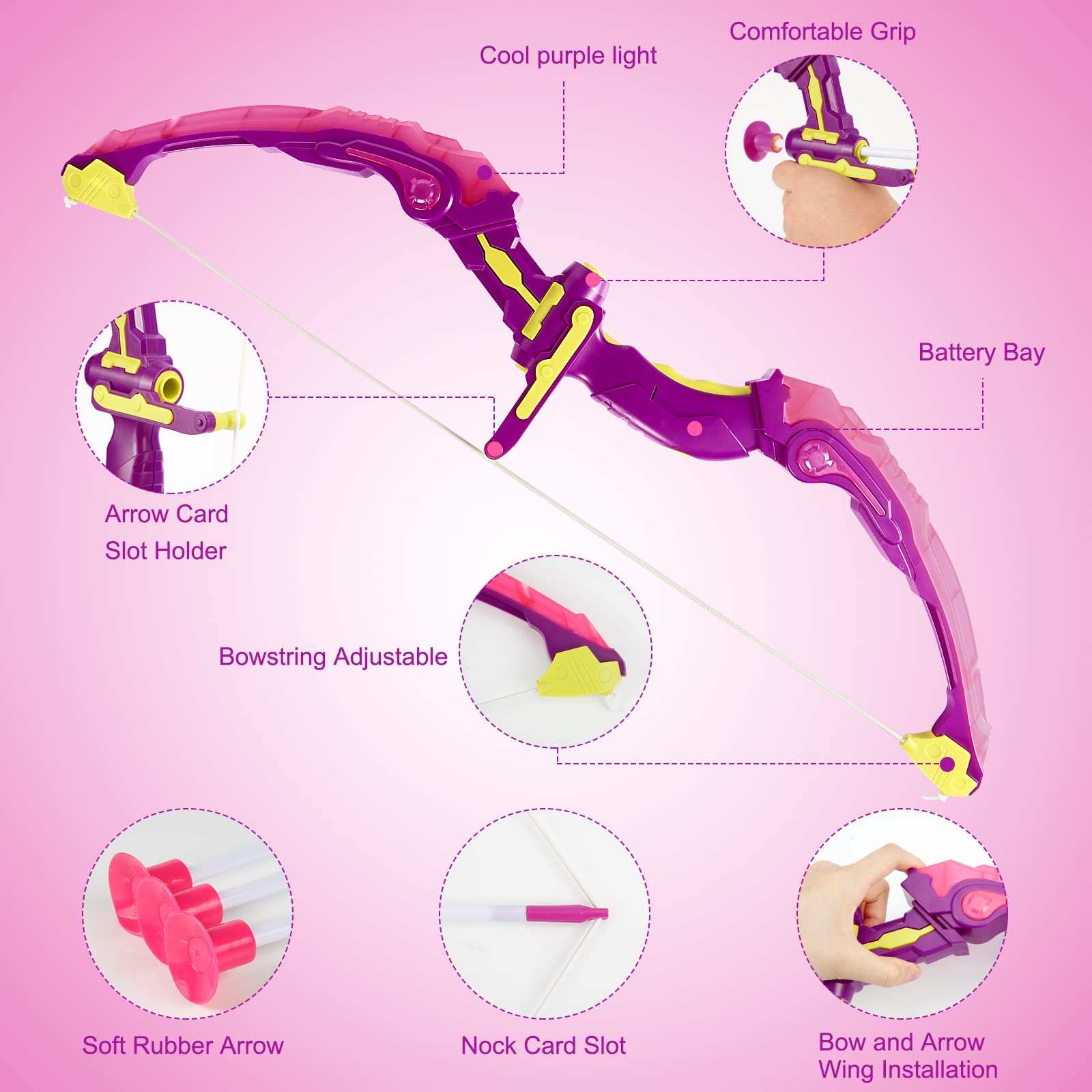 La flèche est équipée d'une ventouse en caoutchouc souple scellée sous vide à forte absorption Il comprend un arc, 10 flèches à ventouse, une cible et un carquois, pour des tirs palpitants Ensemble arc et flèches pour enfants, jeu de tir à l'arc lumineux à LED avec 2 arcs, 12 flèches à ventouse, 1 cible, jeu de chasse intérieur et extérieur, jouets cadeaux pour garçons Troc Echange Ensemble tir sportif neuf jamais servi sur 【Convient à l'intérieur comme à l'extérieur】Jouets de tir à l'arc pour enfants être utilisé à l'intérieur comme à l'extérieur, et les flèches à ventouse peuvent être utilisées en toute sécurité près des meubles et des murs. Tir à l'arc pour débutants : Coent s'y prendre pour débuter N'endommagera pas les murs ou les meubles, permettant aux enfants de jouer n'importe où et n'importe quand Laissez votre enfant devenir le centre d'attention de la fête Arc Et Fleches Enfant Generic Ensemble Arc Et Flèches Pour Enfants, Jouets De Tir Sportif à Set Tir Sportif Enfant Intérieur Extérieur 【Matériau sûr】Jouets de tir sportif est fabriqué en ABS de haute qualité, durable et résistant. Coordination, motricité fine et concentration [+] L'arc et les flèches pour enfants s'illuminent lors du tir, rendant le jeu plus captivant au crépuscule ou dans l'obscurité 【Kit de tir à l'arc complet】Jouets légers de tir à l'arc pour enfants arc et flèches promet des heures de plaisir aux enfants de tous âges.