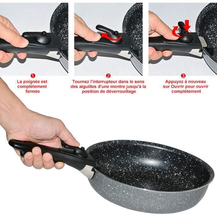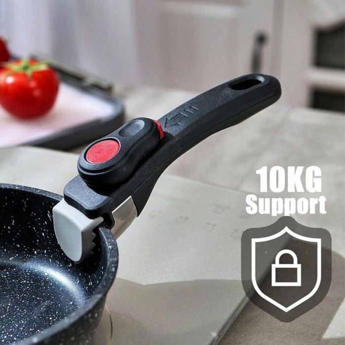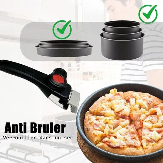 Son design gain de place facilite l’empilage et le transport, tandis que le trou de suspension inférieur permet un rangement soigné et pratique. Poignée Antidérapante en Silicone La surface en silicone dentelée offre une excellente stabilité antidérapante, assurant une prise sûre et confortable même avec les mains mouillées. Conçue pour plus de sécurité et de contrôle, cette poignée garantit une tenue ferme et facile. Compatible avec divers ustensiles de cuisine, comme casseroles, poêles et marmites, offrant confort et praticité pour un usage quotidien. Gain de place et portabilité : Le design amovible permet de ranger facilement la poignée dans un tiroir ou sur un porte-couverts, idéal pour les petites cuisines ou le camping. Poignée Mastrad Manche Détachable Universel Cuisson Pour Poêles Et Casseroles - Verrouillage Sécurisé - Support 10 Kg - Revêtement Anti-chaleur Manche Amovible Poignée Amovible Universelle Elle garantit une cuisson sécurisée et une longue durée de vie. Facile à transporter et à nettoyer. Conçue pour le confort et le contrôle, elle réduit la fatigue et améliore la stabilité, rendant la cuisson plus agréable. Compatible avec la plupart des casseroles et poêles. Set De 8 Pièces Poêles Et Casseroles Avec 2 Couvercles Hermétiques Et 1 Poignée Amovible · - Tefal / Batterie de cuisine. 165 avis. Neuf dès 79,99 Le design en silicone antidérapant assure une prise confortable et ferme, tandis que le mécanisme de verrouillage renforcé fixe solidement la poignée à vos ustensiles. Poignée Universelle et Compacte Compatible avec une grande variété d’ustensiles, cette Poignée Amovible s’adapte aux casseroles à rebord, woks, poêles, bols et plats. Sécurité anti-brûlure et design ergonomique : Le revêtement en silicone et la surface texturée offrent une prise confortable et stable, protégeant vos mains même à haute température. Poignée Brossée Confortable Avec sa surface brossée, cette poignée offre une prise douce et agréable, parfaitement adaptée à la main. Maison - Découvrez notre offre Poignée Amovible Universelle pour Poêles et Casserole Manches Détachables - Manche Verrouillage et Bouche Denté - Support 10. Livraison gratuite à partir de 25€* | Paiement sécurisé | 4x possible | Retour simple et rapide MANCHE AMOVIBLE pour casseroles et poêles inox ARTHUR MARTIN • Occitanie Pièces Electroménager Haute qualité et durabilité : La Poignée Amovible Universelle est fabriquée en bakélite et silicone de haute qualité, résistante à la chaleur jusqu’à 380 °C, durable, anti-déformation et anti-usure.