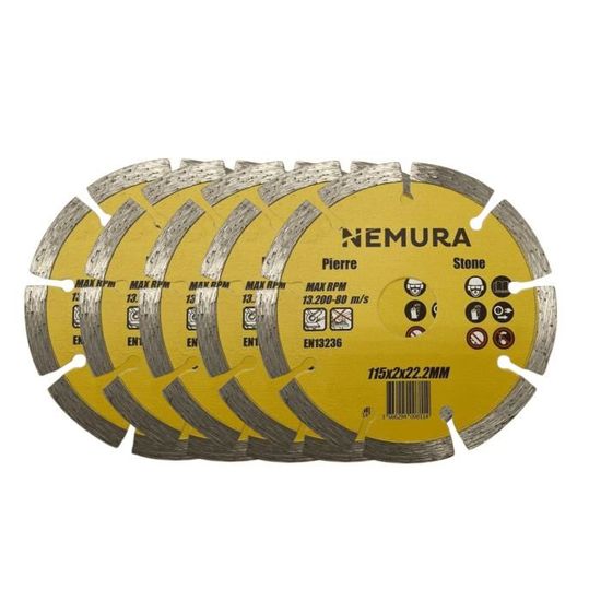 Ces disques diamants conviennent à la fois à la coupe à sec et à la coupe humide. Vous n'aurez pas à les remplacer souvent, vous en aurez donc plus pour votre argent. Disque diamant pour rainureuse - WURTH CARACTÉRISTIQUES TECHNIQUES : Disque à tronçonner diamanté de 115 mm de diamètre avec un alésage de 22,23 mm, idéal pour la découpe du béton, des produits en béton, du béton légèrement armé, de la pierre et de la pierre naturelle Pour obtenir une meilleure répartition de la chaleur, ne pas couper pendant plus de 2 minutes à chaque fois. Disque Diamant Universel 180 X 22,2 Mm Béton, Pierre, Brique 180Mm Disque Diamant Segment 10Mm Si vous rencontrez des problèmes au cours du processus de coupe, veuillez nous en informer immédiatement. Vous pouvez nous envoyer un message ou nous écrire. Disque Meuleuse 125 Disque Diamant Béton/pierre 115 X 22,23mm X-Lock Bosch Disque Carrelage 115mm Large application : Pour une coupe rapide et lisse dans une variété de matériaux, tels que le granit, le marbre, le pavé, le béton, la pierre, la brique, la bordure, le grès et le calcaire. Pour les coupes en masse : Lorsque vous avez besoin de couper beaucoup de béton, de pierre, de brique, de granit, de matériaux de construction, de pierre naturelle, cet ensemble est très utile et vaut la peine d'être acheté. Cela les rend résistantes et durables.