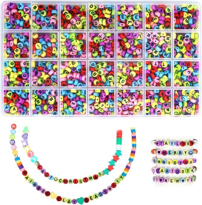 Jollin 2100pcs Perles Lettres, charme bracelet collier boucles d Perles Lettres Multicolores RYAN 800 Pièces Perle Cristal Perle Transparente 4/6/8 Perles De Verre Kit Facettes Perles Perles éducatives Motricité Fine Remarque:Ne laissez pas les enfants créer seuls, évitez de manger par erreur et devez être accompagnés de leurs parents. Meilleurs outils pour la classe d'art Bien emballé:les perles sont stockées dans de petites boîtes, bien organisées, faciles à transporter et facile à ranger. Achetez MJARTORIA 1000pcs Perles Bracelets Colliers Fabrication Kit Lettre Perles DIY Bijoux Artisanat Accessoires pour Améliorer la Capacité des Enfants Utilisation:Ce kit est livré avec des perles 1000pcs pour la fabrication de bijoux, des perles précieuses. Avec des perles colorées, des fils élastiques, des charms amusants et des outils simples, les enfants peuvent concevoir des bracelets, des colliers et d'autres... Un kit parfait pour fabriquer toutes sortes de bracelets , collier, boucle d'oreille, etc. Pour les petits enfants.