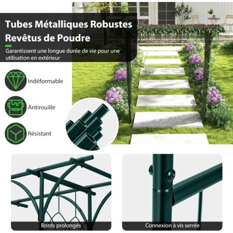 Entièrement envahi, vous créez un point focal attrayant dans votre jardin avec cette tonnelle de roses, qui est en même temps une possibilité de refuge confortable, un distributeur d'ombre pratique et bien sûr un magnifique accroche-regard Description du produit : Cette tonnelle ronde classique avec dôme somptueux sert de treillis ou Tuteur pour roses et autres plantes grimpantes. Au sommet du dôme se trouve une boule à la base de laquelle un crochet est fixé. Treillis Métal Tonnelle De Jardin En Métal Arc De Jardin,Arche De Rosiers Vigne,Mariage Arcade De Jardin Structure Acier Galvanisé La tonnelle à roses en métal marron rouille, avec ses dimensions de 270 x 200 cm, ajoute un cachet indéniable à mon jardin grâce à son ornement esthétique arches treillages tonnelles et pergolas de jardin - Marques, Stock & Livraison rapide chez Leroy Merlin. Un grand choix de produits aux meilleurs prix Arche de Jardin en Métal - TRAHOO - Tonnelles - Blanc - Idéal pour une