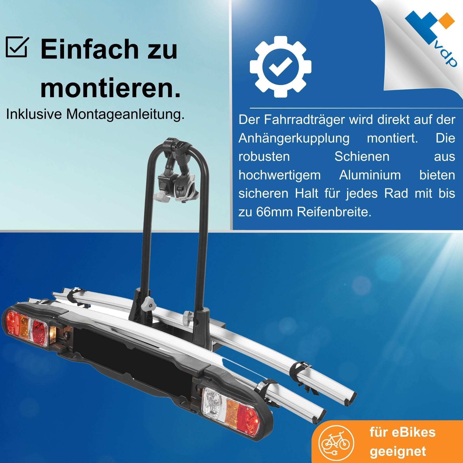 Pliable : facilite l'accès au coffre des vélos montés. Montage rapide sur l'attelage de remorque grâce au levier de serrage. GEPCO est le choix parfait pour les propriétaires de vélos électriques qui recherchent un porte-vélos solide et facile à utiliser. Pliable : oui (cadre vertical)., Fonction rabattable : oui. Fiche 13 broches (en option) - Conforme à l'UE. Transportez jusqu'à deux vélos, même électriques, en toute simplicité avec le TowBike PRO 2 Le Porte-vélos TowBike PRO 2 est conçu pour répondre aux besoins des cyclistes exigeants, offrant une solution fiable pour transporter deux vélos - classiques ou électriques - sans effort. Montage instantané et prise en main facile Grâce à son système de fixation intelligent sur boule... Porte-vélos 2026 | Les Soldes arrivent le 7 janvier 2026 Éclairage : oui, avec homologation E4., Connecteur : 13 broches (en option). Matériaux de qualité supérieure : fabriqué en aluminium 6063 T5 et acier Q235 robuste avec revêtement en poudre pour une durabilité et une résistance aux intempéries. La haute qualité de fabrication, la fiabilité et la conformité aux normes de sécurité européennes le rendent idéal pour les trajets quotidiens et les longues randonnées. Caractéristiques techniques : Nombre maximum de vélos : 2., Poids maximal par vélo : 30 kg., Charge maximale : 60 kg. Porte-vélos 2 Vélos Large Pneus GEPCO Porte-vélos Pour 4 Vélos Jusqu'à 60 Kg Pour Attelage De Remorque Pliable Verrouillable Avec Feu Arrière E4 TÜV Pré-monté Porte-vélos Arrière En Aluminium Pour Transport De Vélos Porte-vélos électrique 60kg Découvrez notre comparatif 2024 des meilleurs porte-vélo électrique sur attelage pour 2 vélos. Choisissez une grande marque pour votre VAE Feux arrière certifiés E-Mark E4 (feux de position, feux stop, clignotants, éclairage de plaque d'immatriculation, feu de recul, feu antibrouillard). Matériaux de haute qualité : aluminium 6063 T5 + acier Q235 avec revêtement en poudre. Certifié TÜV, rapport de contrôle TÜV disponible, conforme à la norme ISO/DIS 15263-4:2006., Produit conforme aux directives EMRAK. Conçu pour être monté sur l'attelage de remorque, le porte-vélos convainc par sa facilité d'utilisation et sa stabilité maximale pendant la conduite. Convient pour des pneus de 20 mm à 60 mm de large. Idéal pour 2 vélos, y compris les vélos électriques - Transport sûr pour les vélos traditionnels et les vélos électriques.