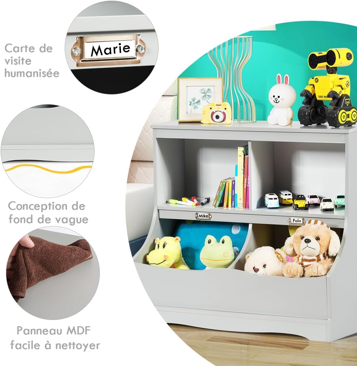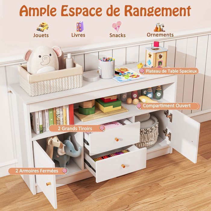 La bibliothèque est fiable pour les enfants de 3 ans et plus. Configuration flexible des bacs: Créez une expérience de rangement sur mesure avec 8 bacs de rangement amovibles. EN STOCK : Meuble de rangement enfant avec 8 bacs amovibles, étagère jouets et livres, rose pas cher - Retrait & Livraison - Paiement 4X disponible. Petit rangement à prix discount GOPLUS Bibliothèque Enfant à 3 Niveaux, Bibliothèque avec Kits Anti... Détails bien conçus: Conçu avec l'enfant à l'esprit, cet armoire de rangement pour jouets est à une hauteur adaptée aux enfants, facilitant l'accès et le rangement de leurs trésors. GOPLUS Bibliothèque sur Pied à 4 Niveaux, Meuble de Rangement en Forme Irrégulière avec Étagère Les bords surélevés protègent les articles de la chute, tandis que les coins arrondis et les boutons arrondis ergonomiques offrent une commodité accrue. Que ce soit pour embellir une chambre, réaménager une salle de jeux pour enfants ou ajouter un charme pratique à un salon, cet organisateur s'intègre parfaitement. Meuble Rangement Jouets Enfant GOPLUS Bibliothèque Enfant En Bois à 4 Niveaux, Etagère à Livres Avec Compartiments Ouverts Bibliotheque Montessori Pour Tout Petits Etagere De Presentation Pour Chambre Denfant Blanc 85727558 Rangement Salon Salle Jeu Enfant Sécurité renforcée: Le dispositif robuste anti-basculemen ancre solidement l'organisateur de jouets avec bibliothèque au mur, assurant qu'il reste droit et sécurisé. Doté d'un design convivial avec coins arrondis et boutons de porte ergonomiques, cet organisateur de rangement est non seulement fonctionnel mais aussi élégant, s'intégrant harmonieusement dans toute configuration de pièce. Espace de rangement généreux: Notre organisateur de rangement pour jouets propose des solutions de rangement catégorisées pour toute la collection de votre enfant.