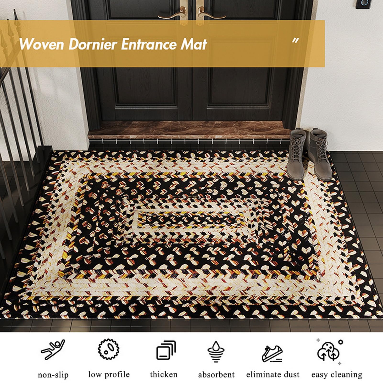 Biscpro Paillasson gris foncé, 90 x 150 cm, pour l'intérieur et l'extérieur, lavable, imperméable, antidérapant, pour l'entrée, la porte d'entrée, le patio, le couloir, le jardin Résistant aux taches : notre paillasson de bienvenue aux propriétés anti-salissures peut protéger le sol des gouttes d'eau, de la poussière et de l'humidité. Tapis D'entrée BESTORI Paillasson Exterieur Antidérapant Tapis Entree Lavable Tapis De Port Super Absorbant Pour Chien Porte Couloir Bleu, 100x100cm Tapis Exterieur Entree Antidérapant et discret : notre paillasson d'entrée est doté d'un envers TPR antidérapant qui l'aide à rester en place sur votre sol. Largement utilisé : notre tapis d'entrée tissé est utilisé pour tous les temps, de l'été chaud à l'hiver froid, fonctionne comme paillasson avant, paillasson extérieur, paillasson de bienvenue, tapis et tapis de garage, tapis pour chien de compagnie, tapis de sol, tapis de cuisine, tapis de salle de bain, ect., . Facile à nettoyer : le tapis de sol est conçu pour être facile à nettoyer. Tapis de sol absorbant antidérapant, paillasson pour entrée de maison... Paillasson tissé en caoutchouc noler Couleur bleu Un Amour De Tapis | La Redoute Conception à profil bas, la porte ne sera pas coincée. Ce paillasson conçu par des professionnels et soigneusement tissé pourrait garantir une utilisation à long terme. Il ne glissera pas et n'abîmera pas les sols.