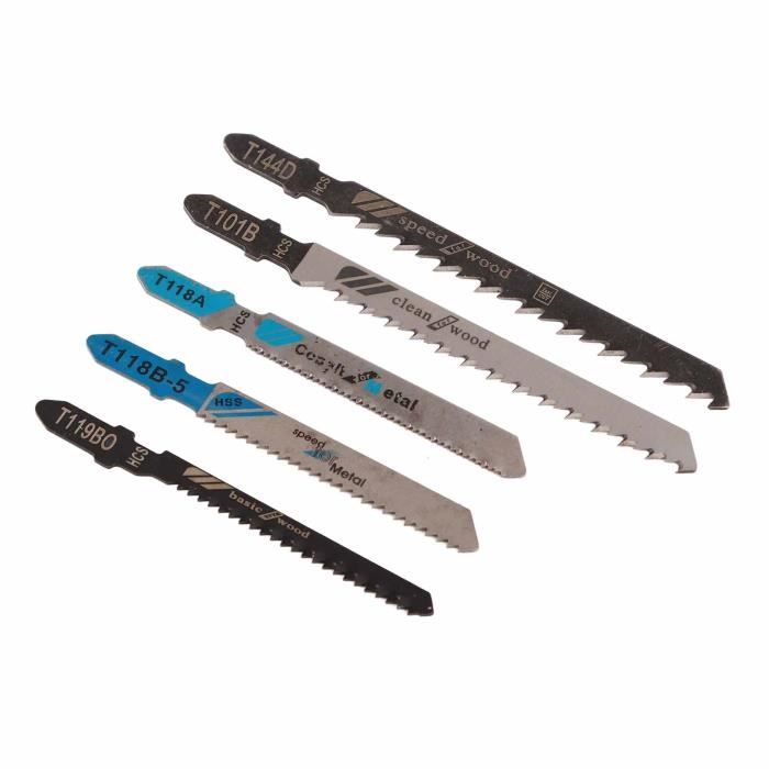 Lames de scie sauteuse "T101A" Clean PC/PVC 3pces avec différents types de lames pour répondre aux différents besoins. Dewalt Scie Sauteuse 35/40 Pièces Lame De Scie Sauteuse Jeu De Lames De Scie Sauteuse Métal Bois Lames Assorties Outil électrique Pour Le Travail Du Bois Lame De Scie Pour Bosch Dewalt Hitachi Lames Scie Sauteuse Le design compact est facile à transporter. Après utilisation, les lames de scie peuvent être rangées de manière sûre et ordonnée, ce qui évite de les perdre facilement. Le design compact facilite le transport. Lames scie à chantourner bois standard - 120 pces acheter en ligne Jeu de lames de scie T127D - FUXTEC - scie sauteuse sans fil FX-E1JS20 Large Utilisation : jeux de lames polyvalents pour la coupe de bois tendre, de contreplaqué et de panneaux de fibres avec des lames HCS et de bois dur, de métal ou de plastique renforcé avec des lames HSS, ainsi que pour le nettoyage, les coupes à vitesse élevée, les coupes courbes, etc. Rangement Facile:La boîte de rangement fournie est robuste et dispose de compartiments pour faciliter le transport et le rangement. Les lames de scie HCS conviennent pour la coupe de bois tendre, de contreplaqué et de panneaux de fibres, les lames de scie HSS pour la coupe de bois dur, de métal ou de plastique renforcé ainsi que pour le nettoyage, la coupe rapide et la coupe en courbe.