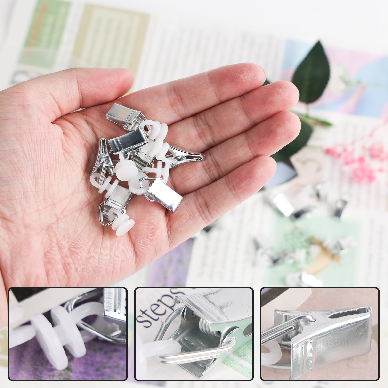 Pinces Rideaux Porte Lot De 100 Pinces à Rideaux, Pinces à Rideaux, Rouleaux Avec Rouleaux Accessoires Rideaux Nombreuses possibilités d'utilisation : les pinces à rideaux avec roulettes conviennent non seulement pour fixer des rideaux, des rideaux de douche et des rideaux de porte, mais peuvent également être utilisées pour accrocher des photos, des cartes postales, des serviettes, etc. Taille : 10 mm x 35 mm, très approprié pour accrocher des décorations facilement et rapidement. Contenu de l'emballage : 100 pinces à rideau, couleur La solution idéale pour tous les types de rideaux : Que vous souhaitiez suspendre des rideaux de douche ou des voilages légers, notre ensemble de pinces à rideaux en acier inoxydable avec crochets est la solution parfaite Veuillez vous assurer que les crochets de rideau pour rails s'adaptent au rail de rideau avant d'acheter., 2., L'ouverture des clips de rideau en métal est très tranchante. ce qui en fait un produit multifonctionnel avec une grande adaptabilité. Pinces pour accrocher les rideaux (2025 Design parfait : les rouleaux de rideau avec pince sont équipés de clips dentelés faciles à accrocher, qui sont faciles à tirer sur les rideaux et ne s'usent pas facilement. - Matériau de haute qualité : les pinces à rideaux pour rails sont fabriquées en fer de haute qualité et en plastique blanc, robustes et durables. - Utilisation polyvalente : les crochets à rideaux conviennent aux rideaux, aux rideaux de douche, aux rideaux de porte, aux photos, aux serviettes, rendent votre chambre plus propre et confortable. Précautions d'emploi : 1er Le rouleau des pinces à rideau a un diamètre de 10 mm et une hauteur de 2,5 mm. Matériau : fer de haute qualité, plastique PP Quantité : 100 pièces., Couleur : argenté/blanc., Dimensions : voir photo. Facile à utiliser : si votre rail de rideau a la bonne taille, il suffit d'insérer le rouleau de rouleau de rideau dans le rail, puis d'utiliser les pinces d'extrémité pour fixer les rideaux. Pour éviter les rayures sur la peau, veuillez être prudent et gardez-le hors de portée des enfants lorsque vous l'utilisez. Design parfait : le kit de crochets à rideaux a une forme simple et belle avec des clips dentelés pour accrocher les rideaux en toute sécurité.