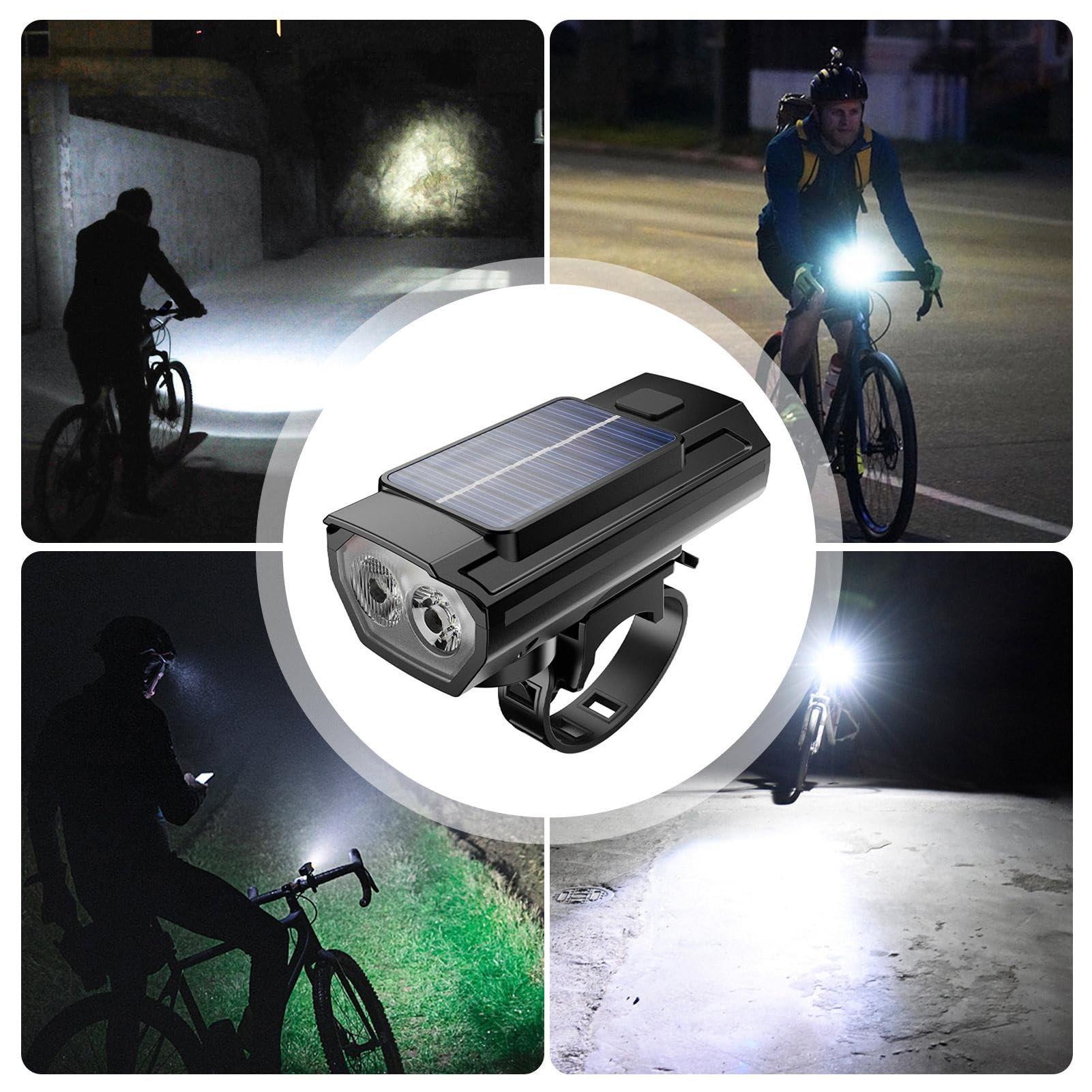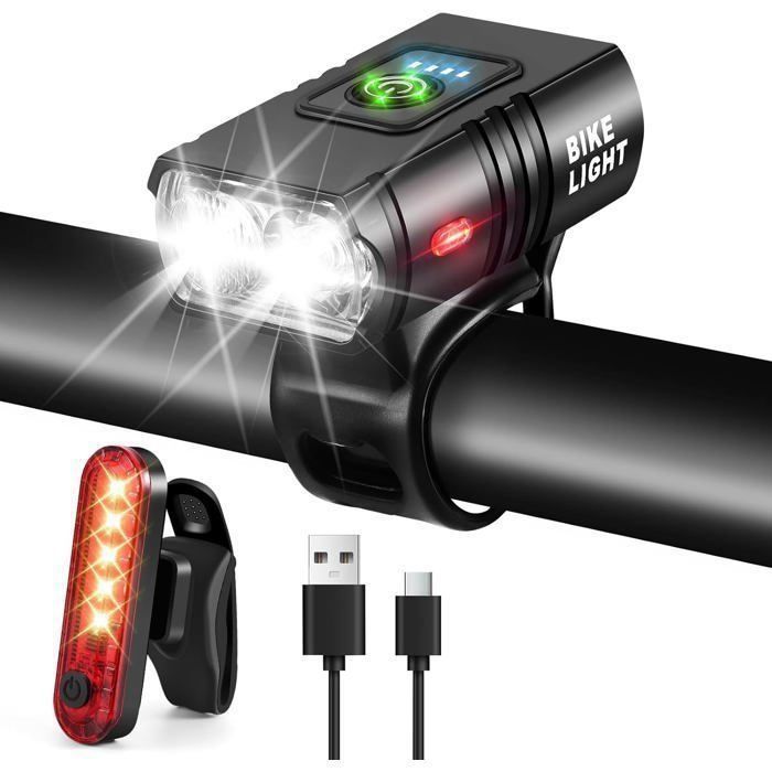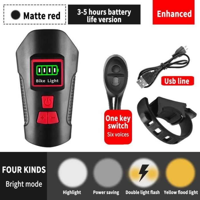 Eclairage Vélo LED Puissant 300 Lumens Rechargeable USB Lampe Frontale VTT Phare Avant Haute Visibilité 200m 3 Modes avec Support Rotatif 360 Degrés Idéal Sortie Nocturne Sécurité Cyclisme - Équipements vélos Restez informé et visible sans effort pendant vos sorties, quelles que soient les conditions. Cergrey Avertisseur de bicyclette, éclairage de bicyclette, Lampe de... WASAGA Phare de vélo, Lampe Frontale de Bicyclette Rechargeable 4 Modes USB alimentée à l'énergie Solaire avec Sonnette pour avertisseur de sécurité à vélo Système d'avertissement avancé : la lampe solaire pour vélo émet un éclairage à haute luminosité et un avertissement non éblouissant pour le véhicule derrière vous, offrant ainsi une vigilance et une sécurité améliorées pendant le cyclisme. Résilience : construite avec un matériau robuste, notre lampe solaire pour vélo résiste facilement à les défis ; le corps en ABS et la mèche LED de haute qualité offrent un éclairage . Lumière de vélo USB Phare de bicyclette Énergie solaire Cyclisme Lampe Affichage numérique innovant : obtenez des mises à jour instantanées sur la puissance restante grâce à l'affichage numérique de pointe de notre lampe solaire pour vélo. Description du produit Lampe de vélo à énergie solaire, lampe frontale solaire de vélo Autonomie de la batterie : environ 4 à 8 heures Batterie : batterie au lithium 800 mAh . Avec une batterie rechargeable de type C et alimentée par l'énergie solaire, le chargement est un jeu d'enfant pendant la journée pour une expérience éclairante après le coucher du soleil. Mode produit : lumière forte, lumière faible, flash Liste de produits: 1 * lampe solaire pour vélo Remarques: En raison des différents paramètres d'éclairage et d'écran, la couleur du produit peut être légèrement différente de celle de l'image. Sa conception garantit une utilisation normale les jours de pluie, offrant un éclairage par les temps et un cyclisme sans effort. Visibilité étanche : naviguez en toute sécurité dans des conditions pluvieuses avec notre lampe solaire étanche pour vélo. Caractéristiques: Nom du produit : lampe solaire pour vélo.