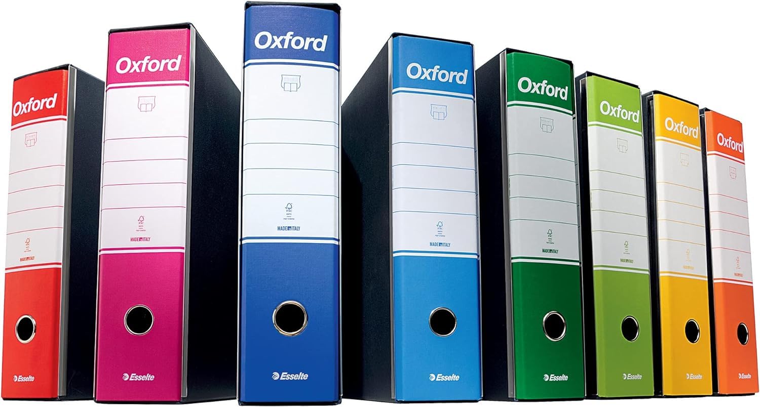 Archivador / Revistero de cartón, revistero archivador Classeur Durable Fabriqué En Italie FSC Promo Classeur à Levier A4 Oxford Chez Géant Casino Classeur A4 Oxford Contenu : 6 x enregistreurs Oxford Esselte format protocole, dos 8 cm, bleu, produit certifié FSC Mix, dimensions (L x H x P) : 85 x 350 x 295 mm, 390785050 Oxford se distingue par la paroi interne raffinée de nuance de couleur sur ton avec la surface esterna. Mécanisme N1: Testé pour 10., 000 ouvertures et fermetures avec precisione., Cartone FSC certificat Esselte Oxford - Classeur A4 avec mécanisme à levier et étui vert en plastique, capacité de 30 litres, 3 trous294 Enregistreur Esselte : convient au stockage de 500 feuilles de 80 g/m² au format A4, il est pratique à utiliser et facile à organiser Classeurs Esselte : adaptés à l'archivage d'un maximum de 500 feuilles 80 g/m² au format A4, ils sont confortables à utiliser et faciles à organiser Mécanisme N.1 : le fonctionnement à levier testé 10 000 fois, garantit des ouvertures et des fermetures efficaces et est garanti pendant 3 ans Robuste : structure en carton de 2 mm revêtu de papier gaufré et bandes métalliques de renfort qui maintiennent les bords de la coque parfaitement droits Le bandes de renforcement métalliques retenir les bords du boîtier parfaitement droite , même après une longue utilisation.