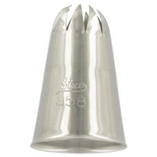 I bent out the tips and made it work quite well for churros, but if I could do it again, I would buy a tip with a somewhat larger opening and fewer star points Douille Pâtisserie Diamètre 1,8 Cm Ateco # 845 - Closed Star Pastry Tip.44'' Opening Diameter 844 Piping Dimensions : ouverture : 1,8 cm de diamètre Entretien : passe au lave-vaisselle. Produit de Corée du Sud