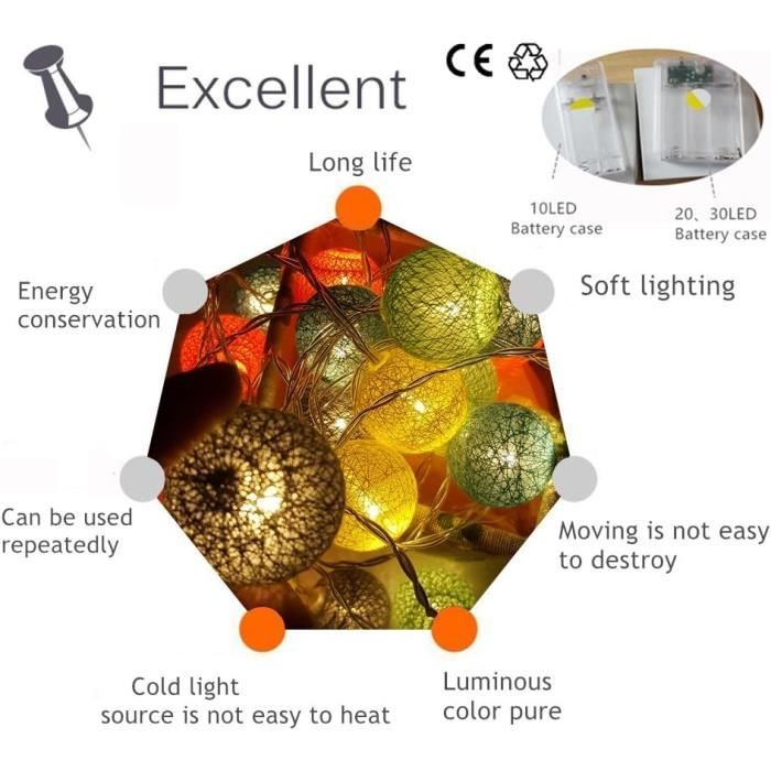 6Cm Guirlande Lumineuse De Noël À Boules De Coton, Dotbuy Éclairage De Guirlande Lumineuse Chambre Enfant Guirlande Lumineuse Led, DOTBUY Intérieur Pile Lumiere Décoration Décoration Guirlande Lumineuse Chambre Excellent service après-vente, 100% pour résoudre vos soucis. Chaînes de belle lampe, le DOTBUY conduit coton boules guirlandes. 20/30 LED Nécessite 3 piles AA (non incluses). Gurlande électrque trcolore de 10 boules col.argent/blanc/rose ✿【Décoration pendant les fêtes】 - Notre guirlandes lumineuses boules décorent idéalement mariage, patios, gazébos, pergolas, café, Noël, centre commercial etc, ajouter instantanément rêveur, romantique, atmosphère de bonheur à votre vie. Décoration pendant les fêtes] - Notre guirlandes lumineuses boules décorent idéalement mariage, patios, gazébos, pergolas, café, Noël, centre commercial etc, ajouter instantanément rêveur, romantique, atmosphère de bonheur à votre vie ✿【Assurance qualité】 - 12 mois de garantie pour les produits et la sécurité des DOTBUY. ✿【Informations sur le produit】 - 10/20/30 LED Blanc Chaud, Taille de boule de coton: 3., 5cm; Longueur 1., 5m /3m / 4., 5m ; Câble d'Alimentation 0,3m, 10LED Nécessite 2 piles AA (non incluses).