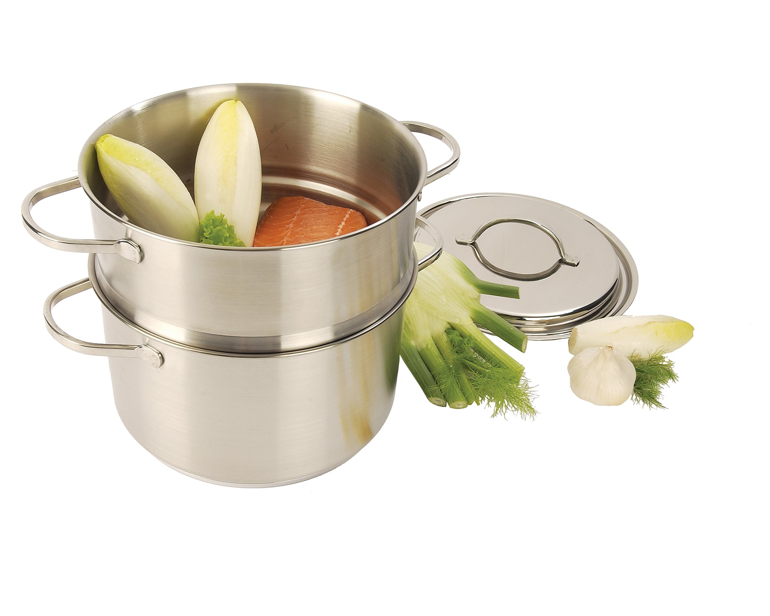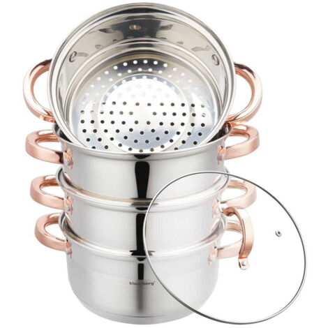 Średnica garnków w tym zestawie - 22 cm W skład zestawu wchodzi: - garnek zasadniczy: Ø22 ×11 cm, pojemność 4L - wkłady parowe - 1 szt., - szklana pokrywa Set de marmites vapeur 20 cm 5 pièces KLAUSBERG KB-7730 cuiseur vapeur Komplet garnków do gotowania na parze wykonany jest z wysokiej jakości stali nierdzewnej. Lot de 3 ustensiles de cuisson vapeur Passe au lave-vaisselle pour un nettoyage facile Cuisson saine et sans friction Zastosowany materiał umożliwia szybkie podgrzanie potraw i przez dłuższy czas utrzymuje ciepło. 10022165 Vapeur En Bambou 24 Cm, Panier De Cuisson De 3 Pièces, Cuiseur Zestaw jest łatwy w utrzymaniu czystości. Wykorzystana stal składa się z najlepszej jakości stopu powszechnie stosowanego w światowej klasy produktach, co gwarantuje jej wysoką odporność na korozję oraz bardzo dobrą wytrzymałość. Pokrywa szczelnie przykrywa wkłady, tak aby para wodna nie wydostawała się na zewnątrz ale skraplała do wewnątrz garnka. Une marmite à vapeur pratique et attrayante. Caractéristiques : - en acier inoxydable de haute qualité. - fond thermoconducteur Set Cuisson Vapeur 3 Pièces Cuiseur Vapeur - Papier Pour Cuiseur Vapeur Blanc - 9 Pouces - 50 Cuiseur Vapeur électrique En Inox Grubość ścianek garnka wynosi ok., 1mm.