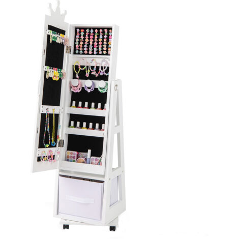 [Construction robuste et sûre]- Cette armoire à bijoux pour enfants est équipée d'un dispositif anti-basculement et d'une base ronde avec des patins antidérapants pour assurer une stabilité sur tout type de sol. HOMFME Armoire a Bijoux 3-en-1 pour Enfant avec Miroir sur Pied, Armoire Autoportante avec Base Pivotante à 360°, Crochets, Étagères et Tiroir, Armoire en Forme Couronne, Idéal pour Enfants (Rose Description : Transformez la chambre de votre enfant en un espace de rêve avec notre armoire à bijoux 3-en-1 pour enfants. La conception anti-basculement sécurisée permet de fixer l'armoire au mur pour éviter tout risque de basculement. Son style mignon et ses décorations attrayantes en font un véritable accroche-regard dans les chambres d'enfants, en faisant un cadeau idéal pour diverses occasions telles que les anniversaires, Noël ou d'autres fêtes. [Cadeaux de qualité pour votre fille]- Avec des motifs de couronne et de cœur, cette armoire à bijoux ajoute une touche charmante à n'importe quelle chambre de petite fille. [Espace de rangement important et bien organisé]- Notre armoire à bijoux dispose d'un espace de rangement généreux et bien organisé, comprenant 35 emplacements pour bagues, 3 étagères intérieures, 2 étagères inférieures et 2 crochets pour accrocher les vêtements des enfants. Armoire A Bijoux Sur Pied,Rangemen Avec Miroir Plein Longueur & Lumieres LED Sur Le Miroir Autoportante Verrouillable Avec Crochet De Collier Blanc 91345783 La grande base ronde assure une stabilité fiable De plus, la sécurité de votre enfant est notre priorité, c'est pourquoi nous avons inclus un dispositif anti-basculement pour maintenir l'armoire en place. [Large base rotative à 360]- La base pivotante à 360 degrés de l'organisateur de bijoux permet aux enfants de trouver le meilleur angle pour vérifier leur apparence. Espace de Rangement Classifié : Le cabinet de rangement pour bijoux dispose de 18 emplacements pour boucles d'oreilles, 13 crochets pour bracelets et colliers, 64 emplacements pour bagues, 3 barres pour bracelets, 3 étagères de rangement, 1 tiroir en tissu pliable et 1 étagère de rangement arrière Armoire à Bijoux Avec Miroir Armoire à Bijoux Pour Enfants Miroir Sur Pied Avec Grande Capacité De Cadeau Fille Anniversaire Noël Cette armoire offre une classification soignée pour garder tous les bijoux bien rangés.