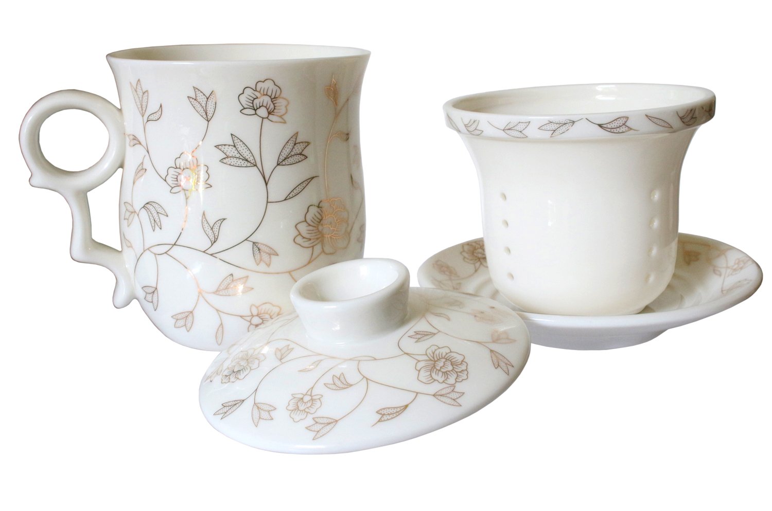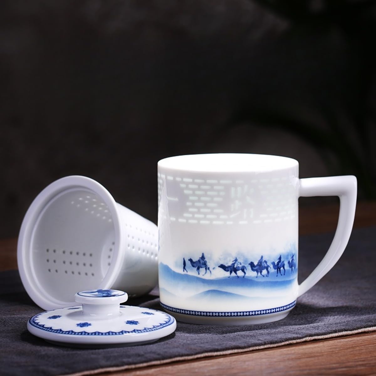 Gaiwan chinois, porcelaine Jingdezhen céladon 150 ml En porcelaine chinoise Jingdezhen. Tasse à Thé Avec Infuseur 350 Ml Couvercle Soucoupe Tasse En Porcelaine Avec Couvercle Et Soucoupe Hollihi - Infuseur De Thé Chinois En Porcelaine Infuseur Thé Intégré Tasse à thé professionnelle - Contenance généreuse de 350 ml - Pour toutes les sortes de thés : noir, vert, pu'er et tisane., Savourez votre thé. Sa belle conception, élégante et fonctionnelle, en fait un merveilleux cadeau pour les amateurs de thé. Jolie tasse de bureau. L’infuseur en porcelaine maintient les feuilles de thé à l’intérieur de la tasse sans y laisser de résidus.Sa belle conception, élégante et fonctionnelle, en fait un merveilleux cadeau pour les amateurs de thé.Moyen simple de préparer une tasse de thé avec des feuilles de thé en vrac Théière en verre avec infuseur en porcelaine fine, tasse et soucoupe Lorsque vous admirez les fleurs à l'extérieur depuis votre maison, vous pouvez vous préparer un thé au jasmin avec cette tasse., Instructions d’utilisation : 1., Choisissez le thé que vous voulez boire et faites bouillir de l’eau., 2., Mettez la quantité de feuilles souhaitée dans l'infuseur et placez-le dans la tasse., 3., Versez-y l’eau bouillante - Généralement, on ne boit pas le thé de la première infusion. L’infuseur en porcelaine maintient les feuilles de thé à l’intérieur de la tasse sans y laisser de résidus. Lorsque vous avez un rendez-vous dans la salle de réunion, vous pouvez préparer une tasse de thé fort à emporter avec vous.