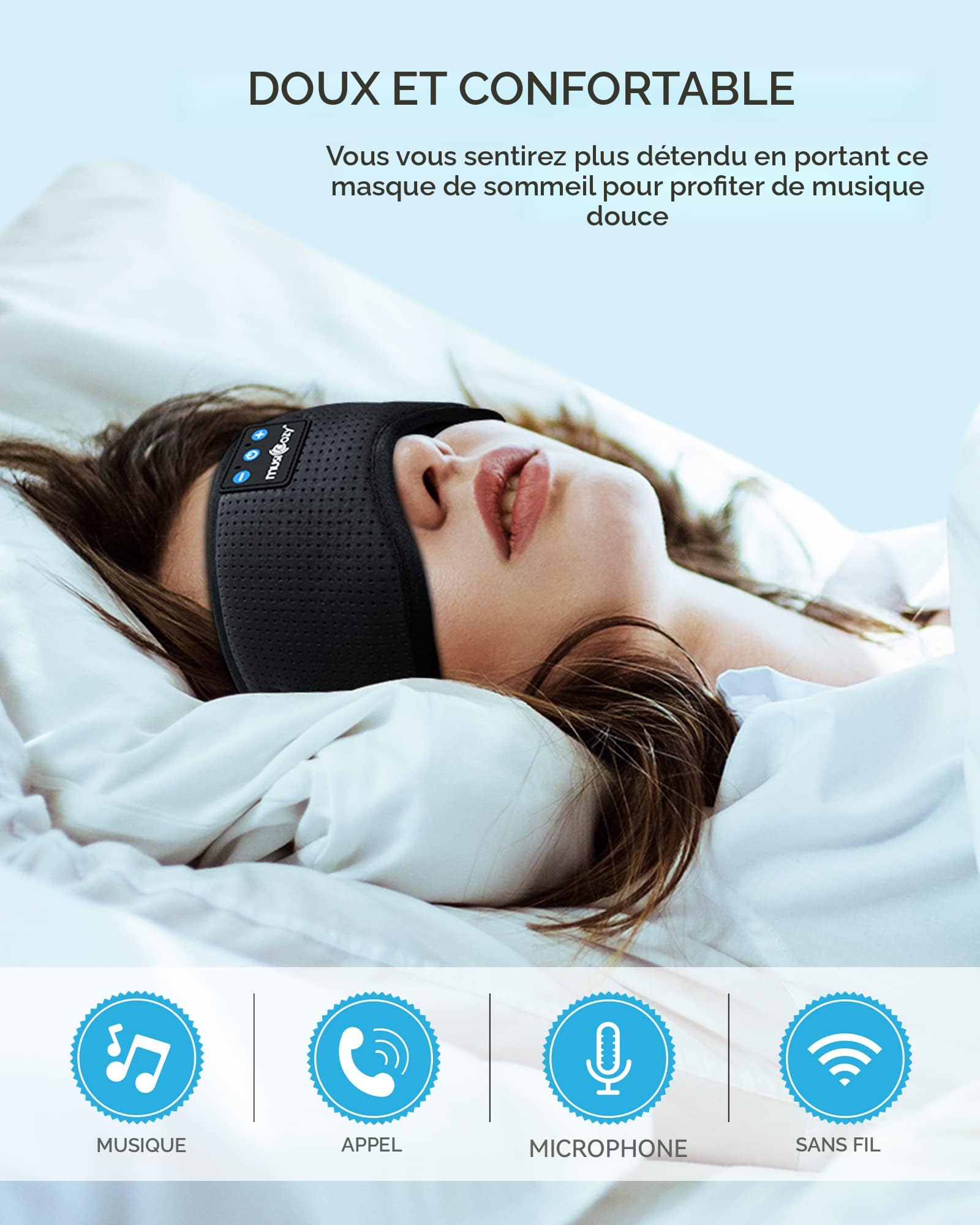 Casque de sommeil sans fil - Casque de sport confortable - Idéal pour MUSICOZY Casque de sommeil Bluetooth, casque de sport sans fil avec microphones étanches IPX6 pour dormir, entraînement, course à pied, insomnie, personnes dormant sur le côté, voyage, yoga, méditation, bureau Taille unique et élastique pour les meisten Le Musicozy Schlaf Kopfhörer s'est tourné vers une même taille, verstellbare et schmerzfreie Kopfgröße, die sich beim Schlafen ou Training nicht bewegt oder herunterfällt., Validated_bullets1 Étui multifonctions 5 en 1 Étui à écouteurs Bluetooth combiné Musicozy, casque Bluetooth, masque, casque de sport et bandeau de casque, und im Vergleich zu herkömmlichen Kopfhörern leichter und praktischer. C'est un bon moyen de s'entraîner avec du yoga et de pratiquer le yoga. Casque de sommeil multifonction : casque de sommeil, masque de sommeil et bandeau de sport 3 en 1, le bandeau de casque Musicozy est fabriqué en tissu extensible respirant et dispose d'un casque sans fil et d'un microphone intégrés Le Schlaf-Stirnband-Kopfhörer est un parfait Festival-Geschenk pour vos Liebsten, damit sie den gesunden Schlaf genießen können Spieldauer über 15 Stunden Mit un verbesserten Polymer-Lithium-Akku bietet der Musicozy Sportkopfhörer Schlaf kopfhörer bis zu 14 heures du jeu. Casque de sommeil multifonction 5 en 1 : les écouteurs de sommeil Musicozy Bluetooth combinent les écouteurs de sommeil, les écouteurs Bluetooth, le masque de sommeil, les écouteurs de sport et les écouteurs pour dormir et sont plus légers et pratiques que les écouteurs traditionnels Les câbles MUSICOZY-Kopfhörer sont compatibles avec tous les appareils et prennent en charge le Bluetooth. L'agent atmungsaktive et weiche Stoff peuvent absorber les fibres intestinales et les cheveux, pour les empêcher de bloquer leurs cheveux.