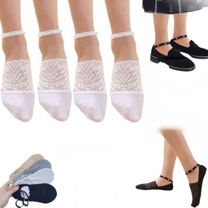 Chaussettes en Dentelle Perlée pour Femme - ZHUODIKE - Protège-Pied Chaussettes Dentelle Femme 5 Paires Chargée Sexy Chaussettes Bateau Chaussettes En Dentelle Respirant Anti-délestage Pour Bas Princesse Style Décontracté Idée cadeau parfaite : ces chaussettes blanches pour femmes avec dentelle sont un cadeau très apprécié pour une amie, une collègue ou un être cher à l'occasion d'un anniversaire ou d'une fête. Ces chaussettes courtes en coton pour femmes sont faciles à assortir grâce à leur style minimaliste, apportant une touche de grâce. L'élasticité étudiée des bords garantit que les chaussettes restent toujours en place sans serrer. Design élégant en dentelle : ajoutez une touche d'élégance à votre garde-robe avec ces chaussettes en dentelle. Les motifs complexes en dentelle en font un accessoire parfait pour les tenues décontractées et formelles, vous permettant de vous démarquer avec une touche féminine Confort maximal : fabriquées en coton de haute qualité, ces chaussettes blanches pour femmes sont très douces, respirantes et agréables sur la peau. Construction durable : renforcées dans les zones à forte tension, ces chaussettes sont conçues pour résister à l'usure quotidienne. Style polyvalent Elles s'accordent avec tout : des tenues décontractées pour une sortie entre copines à un look plus sophistiqué pour une soirée spéciale. Ajustement parfait : les chaussettes blanches pour femmes de taille unique s'adaptent confortablement à la plupart des femmes.