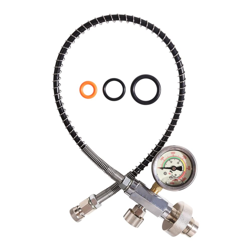 Wresetly Poids : 427 g. Skyverty RüSten L'adaptateur de charge - Station de remplissage de bouteille de plongée avec connecteur DIN 232/300 bar pour le remplissage d'air PCP Type de tuyau : tuyau à ressort 24 Pression du manomètre : 6000 psi (40 MPa) grand manomètre ., Filetage : G5/8-14., Type : station de remplissage Couleur : argenté. Le DIN (G5/8) s'adapte aux bouteilles de plongée de 300 et 232 bar. Valve de purge, la ventilation est très lisse Connecteur Air Comprimé 6000 PSI Opercule - Adaptateur Pour Bouteille De Plongée - Conversion DIN Vers Station Recharge PCP DIN 232/300 Bars Matériau : acier inoxydable et cuivre. est renforcé avec des ressorts et 50 cm. Grand jauge lumineuse de 48 mm, double échelle 0-40 MPa et 0-6000, jauge scellée en acier inoxydable, parfait pour l'extérieur. La taille de l'article peut varier de +/- 1 à 3 cm. Station Recharge Air Comprimé Adaptateur Recharge Réservoir Peut être utilisé avec des bouteilles de plongée avec raccord DIN. Station de remplissage SB - Equip'Fluides