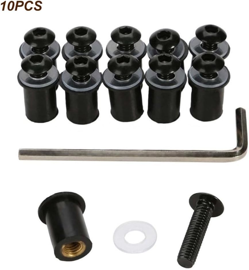 Découvrez notre kit de boulons pour pare-brise de moto, conçu pour offrir une solution de fixation fiable et durable. Ce kit de boulons pour pare-brise de moto est universel ! 10 pièces en aluminium CNC, taille M5 x 16mm. Compatible avec la plupart des motos ayant un motif de boulon M5 Fabriqués en alliage d'aluminium de haute qualité, ces boulons résistent efficacement à la corrosion et aux intempéries, assurant une longévité exceptionnelle. L'ajout de rondelles en caoutchouc optimise la tenue et prolonge la vie utile du produit. Kit Complet: Ce paquet contient tout le nécessaire pour la fixation d'un pare-brise de moto : 10 boulons, 10 écrous, 10 rondelles et un tournevis hexagonal, le tout emballé de manière sécurisée pour garantir l'intégrité du produit à la livraison. Vis écrous Rondelles Caoutchouc 10 Vis De Montage Pour Pare-Brise De Moto, Vis M5 X 16mm Pour Pare-Brise De Moto, Vis Et Boulons, Tournevis Pour Pare-Brise De Moto (Noir Boulons Pare-brise Moto M5 16mm Le kit est universellement compatible avec tous les motos ayant des pare-brises de taille M5, ce qui le rend extrêmement pratique pour diverses marques et modèles. Conception Durable et Fonctionnelle: Chaque élément du kit est conçu pour résister aux rigueurs de l'utilisation quotidienne sur la route. Les boulons et les écrous robustes maintiennent fermement le pare-brise, même dans des conditions météorologiques difficiles. Les rondelles en caoutchouc fournies avec les boulons aident à amortir les vibrations et à prévenir tout desserrage causé par les vibrations du moteur ou les conditions de conduite. VBESTLIFE Écrou de fixation du pare-brise Écrous en Caoutchouc M5 Optez pour notre kit de boulons pour pare-brise de moto et bénéficiez d'une solution de fixation fiable qui garantit sécurité et tranquillité d'esprit lors de vos déplacements. Ces modèles conviennent à toutes les marques de bulles moto et à toutes les versions, hautes ou basses. Fabriqués en aluminium, ces kits de vis sont livrés avec...