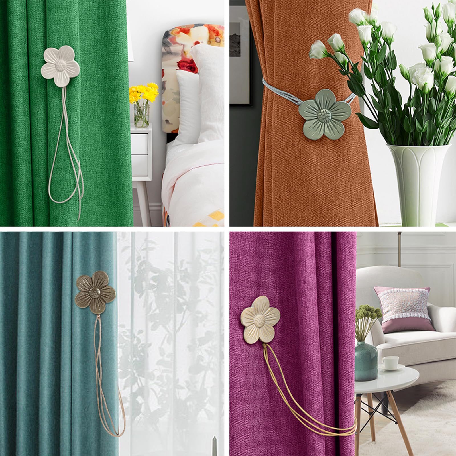 Apportez une touche d'élégance à votre pièce et encadrez magnifiquement vos rideaux de fenêtre avec ces embrasses de rideaux. Ces embrasses rideaux magnétiques Lewondr sont aussi jolies que pratiques ! En lin avec un design tournesol, elles ajoutent une touche déco à ta maison Aspect élégant intégré avec de puissantes boucles magnétiques, il rend non seulement l'installation plus pratique, mais devient également une garniture idéale pour décorer votre espace de vie afin qu'il soit rempli d'une ambiance artistique. Joli et durable - En alliage d’aluminium, brillant, solide et durable. Applications - Convient pour différentes épaisseurs de rideaux, de gaze pour fenêtres ou de moustiquaires, peut être utilisé dans le salon, la chambre à coucher, le bureau, la salle de bain, etc. Embrasses à Rideaux Magnétique, [Lot De 2] Boucle De Rideau Aimantees En Acier Inoxydable Attache De Rideau En Forme De Fleur De Paon En Cristal Pour Maison Chambre Salon Bureau Or Argenteextensib 91860966 Boucle Magnétique Facile à installer, aucun trou n'est nécessaire pour éviter d'endommager les murs. Conception de fil à ressort - Le câble à ressort innovant en acier inoxydable offre une élasticité totale et une longueur d’étirement libre, pour répondre aux besoins des rideaux de différentes épaisseurs et tailles. Utilisation flexible - Vous pouvez choisir une variété de façons de l’utiliser, telles que des boucles tout renforcées, à moitié attachées, etc. Durable & Belle L'ornement de fleurs est minutieusement sculpté, réalistes, durables et émet une sorte de sensation esthétique artistique chic. Lewondr lot de 4 embrasses aux rideaux rétro magnétiques, en ance Pas besoin de s'inquiéter de la longueur de la corde. DÉCOR ÉlÉGANT - L'embrasse en forme de fleur est fabriqué en lin et de boucles magnétiques, à la conception simple et élégante vous permettant de décorer vos rideaux de manière chic,