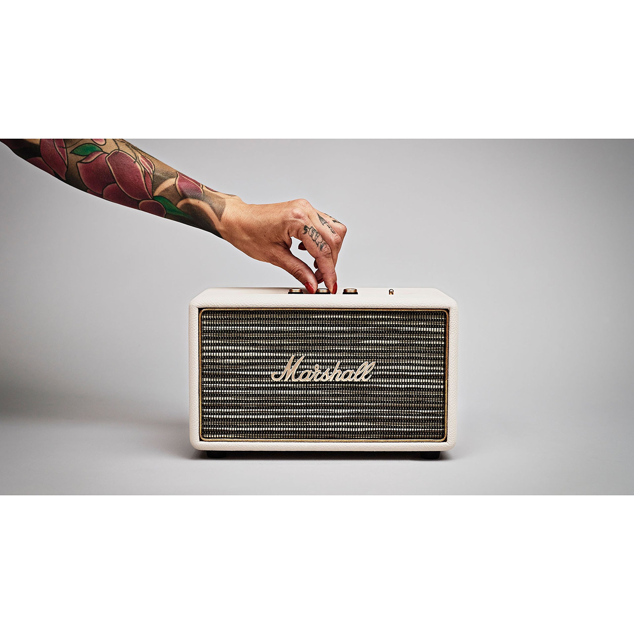 Troc Echange Marshall Acton Enceintes sur Connectez-la sans fil en Bluetooth ou utilisez simplement le cordon en spirale inclus pour la relier à votre téléphone grâce à l'entrée auxiliaire 3,5 mm. Enceinte Compacte Qualité Son Enceinte MARSHALL ACTON III Crème - ELECTRO DEPOT Enceinte Vintage Son Puissant Description du produit Ne vous laissez pas tromper par la petite taille de cette enceinte. Design Marshall Classique - L'Acton est un succès instantané du rock ‘n’ roll avec son style Marshall classique Perfectionnez Votre Son - L'Acton est dotée de boutons de contrôle analogiques qui vous permettent d'affiner votre musique Cette enceinte est dotée d'une fonction multi-hôtutilisateurs, ce qui permet de se connecter à deux appareils Bluetooth et de passer aisément de l'un à l'autre Test des enceintes Marshall Acton III et Woburn III Cette enceinte de taille réduite, qui complétera à merveille une installation idéale dans votre cuisine, votre chambre ou votre bureau, apportera du style et du son au plus petit des espaces. Contenu du coffret 1 x haut-parleur stéréo portable Acton, 1 x adaptateur secteur, 1 x guide de démarrage rapide, 1 x lois et sécurité L'Acton est une enceinte stéréo active impressionnante et compacte qui dissimule une grande puissance dans son petit caisson.
