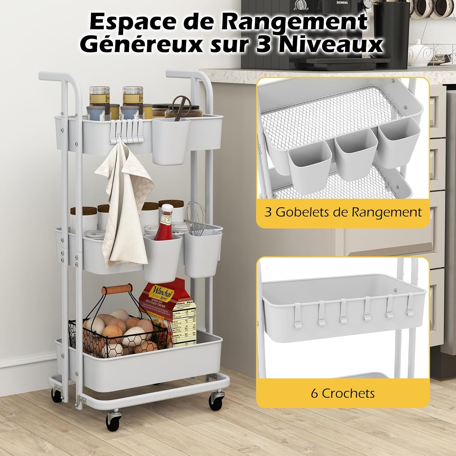 Assemblage Facile - L'installation de ce chariot roulant à 3 niveaux est très simple. Giantex Desserte de Cuisine à roulettes, Chariot de Rangement avec Compartiment Ouvert pour Bricolage - Découvrez notre offre GIANTEX Chariot de Rangement à 3 Niveaux avec Roulettes Universelles Verrouillables, Desserte de Style Industiel pour Cuisine,. Livraison gratuite à partir de 25€* | Paiement sécurisé | 4x possible | Retour simple et rapide 4 Roues Universelles - Ce chariot poussoir pliable est équipé de 4 roues universelles flexibles, silencieuses et résistantes à l'usure. Contrairement aux autres chariots roulants, celui-ci est conçu avec 4 compartiments ouverts sur chaque étagère. COSTWAY Desserte de Cuisine avec Plateau Amovible, Chariot de Service... Large Application - Ce chariot multifonctionnel peut être utilisé comme chariot d'outils roulant dans votre garage ou entrepôt, ainsi que comme chariot utilitaire dans votre maison ou bureau. Vous pourrez ainsi le ranger facilement et économiser de l'espace. Giantex Chariot De Rangement à 3 Niveaux Avec 3 Paniers Chariot De Cuisine Service Avec 4 Roues Universelles 2 Freins Desserte Roulettes Pour Cuisine S Blanc Neutre 4e5a35fe 8a6c 55e0 9541 145f4afee7b8