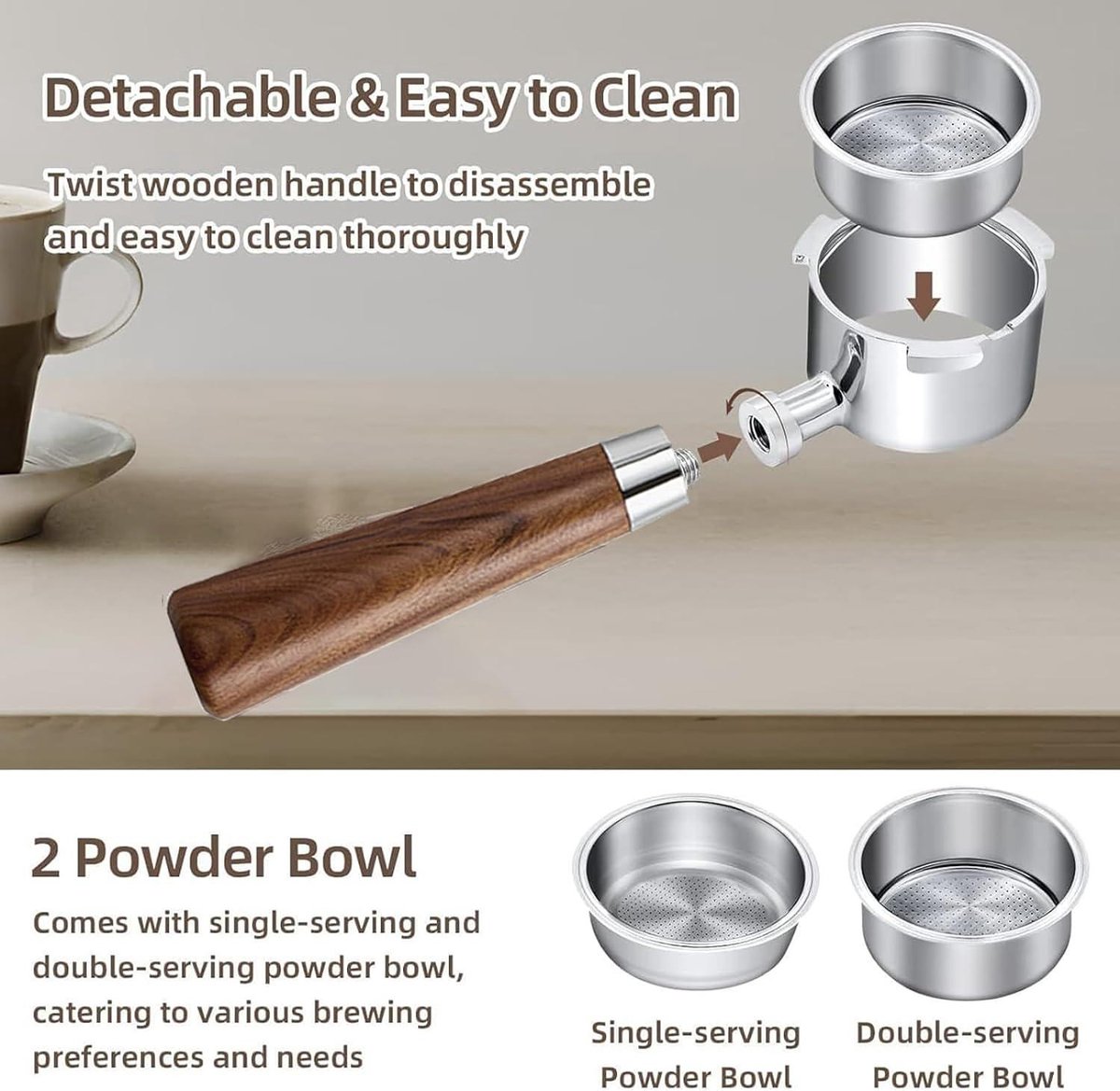 Porte-filtre sans fond de 51 mm avec panier à 3 oreilles en acier inoxydable et poignée en bois massif, pièces de rechange compatibles avec la machine Delonghi EC685/EC680 Panier Filtre Non Pressurisé Acier Inoxydable Porte-filtre Philorn Sans Fond 51 Mm à 3 Oreilles, Avec Tamis A Cafe Moulu Compatible Avec Les Machines Delonghi Dedica Ec680ec685 Et Tamis En Acier Inoxydable 91965311 Porte-filtre Sans Fond Delonghi EC680 La conception sans fond du porte-filtre de 51 mm favorise un meilleur écoulement et une formation parfaite de la crème. Il résiste à la corrosion et à la chaleur, supporte sans problème les températures élevées et les conditions de pression lors de la préparation du café et garantit des résultats d'extraction constants. Vous pouvez ainsi observer de près la qualité de votre café, optimiser le temps d'extraction et obtenir un espresso parfait. Porte-filtre sans fond de 51 mm notre porte-filtre de 51 mm et kit de panier filtrant est compatible avec les Delonghi EC0680 et EC0685. Les poign es sont l g res et particuli rement lisses, ce qui en fait un excellent compagnon pour la pr paration de l'expresso Sans coins ni bords cachés, il y a moins d'accumulation de résidus de café, et un simple rinçage ou essuyage avec un chiffon humide suffit pour le remettre en parfait état. Découvrez nos offres Porte-filtre DeLonghi Dedica non pressurisé : large sélection de produits au meilleur prix | Livraison gratuite à partir de 10€* | Entreprise française | Paiement 4x possible 【Porte-filtre sans fond 51 mm】 : une quantité excessive, insuffisante ou inégale de marc de café entraîne des éclaboussures pendant l'extraction. 【Contrôle visuel de l'extraction】 : en tant que porte-filtre sans fond, il permet de voir directement le café s'écouler pendant l'extraction.