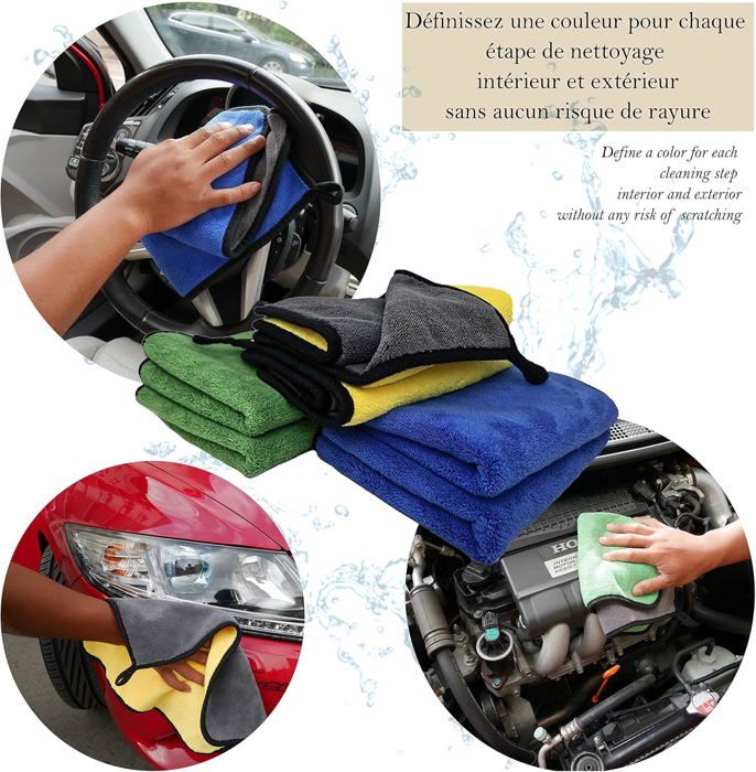 Microfibre Voiture SOFTBATFY Ultrasoft, Grand, épais Et à Séchage Microfibre Séchage Voiture SOFTBATFY Ultrasoft, Grand, épais Et à Séchage Rapide Pour Voiture, Chiffon De Nettoyage En Microfibre, 800 G/m², Chiffon De Polissage Cirage, Nettoyage Automobile, Lot De 6, 40,6 X 40,6 Les serviettes de voiture peuvent être lavées en machine et séchées au sèche-linge. L'absorption d'eau de la serviette de nettoyage en microfibre est plus forte que la serviette normale. La serviette de séchage double face en peluche est idéale pour votre voiture, camion, moto, camping-car, bateau ou partout où vous avez besoin d'une absorption ultra et d'un toucher extrêmement doux. Serviette de nettoyage en microfibre ultra douce de 800 g/m². Super doux et parfait pour la voiture. L'absorption d'eau de la serviette de nettoyage en microfibre est plus forte que la serviette normale. Il peut absorber jusqu'à près de 10 fois son poids en liquide Spécialement formulé pour travailler dur même sur les surfaces automobiles les plus délicates. 30x3 0/60CM Microfibre De Lavage De Voiture Serviette De Nettoyage De... Parfait pour le lavage, le cirage, le polissage, le polissage et le séchage de votre voiture. Sans rayures, non pelucheux et sans tourbillons, fonctionne parfaitement sur toutes les surfaces.