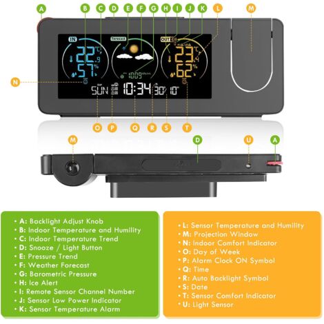 Indicateurs informatifs pour une sensibilisation accrue: profitez des indicateurs MAX/MIN qui enregistrent les valeurs de température et d'humidité les plus élevées et les plus basses sur une période de 24 heures. Ce station météo sans fil est parfait pour les environnements nécessitant un contrôle climatique strict, tels que les entrepôts, les serres, les salles de stockage et les installations de stockage à froid, vous permettant de réagir rapidement aux changements environnementaux Vous pouvez changer l'unité de température avec la touche CH ; l'appareil met à jour les valeurs toutes les 30 s pour garantir l'exactitude. Station Météo sans Fil avec Capteurs Extérieur, Thermomètre Hygromètre... Fixez-le au mur ou placez-le sur une table pour un accès pratique de température et d'humidité sur 24h, appuyez brièvement sur MEM pour les consulter. Ce dispositif vous aide à déterminer rapidement si votre environnement est trop humide (plus de 70%), confortable (entre 40% et 70%) ou trop sec (moins de 40%), pour un meilleur bien-être. LIORQUE Station Meteo Interieur Exterieur Sans Fil, Thermometre Hygrometre avec Capteur ... Avec Capteur à Distance De 100M, Affichage Rétro-éclairage. 23,74 Présentation des boutons du produit., Lorsqu'il est alimenté par un adaptateur, le rétroéclairage reste allumé. Grand écran clair avec rétroéclairage ajustable: doté d'un écran LCD de 4,4 pouces pour une lisibilité facile. Surveillance climatique précise: équipée de capteurs de haute précision, cet appareil fournit des relevés de température fiables avec une précision de ±1°C et des relevés d'humidité avec une précision de ±5%HR. Profitez d'un rétroéclairage de 10 secondes pour une consultation rapide, ou maintenez le rétroéclairage constamment allumé lorsqu'il est alimenté par un adaptateur. Commutation entre les°F et °C Présentation de l'installation des capteurs., LIORQUE Station Météo Sans Fil Thermomètre Hygromètre Review Le rétroéclairage de l'écran dure 10 secondes, ce qui facilite la consultation nocturne. 3 capteurs inclus, adaptés pour une installation à plusieurs endroits., Le rétroéclairage propose trois niveaux réglables (élevé, faible, éteint). L'appareil indique l'évolution de la température et de l'humidité sur la dernière heure à l'aide de flèches (hausse, baisse ou stable). écran LCD Rétroéclairé Météo STATION METEO AVEC SONDE SANS FIL THERMOMETRE HYGROMETRE GRAND Station Intérieur Extérieur Alerte de valeur extrême Grâce à son grand écran LCD, les informations sont faciles à lire. Avec une portée de transmission de 100 mètres en plein air, ce thermometre hygrometre offre une couverture étendue