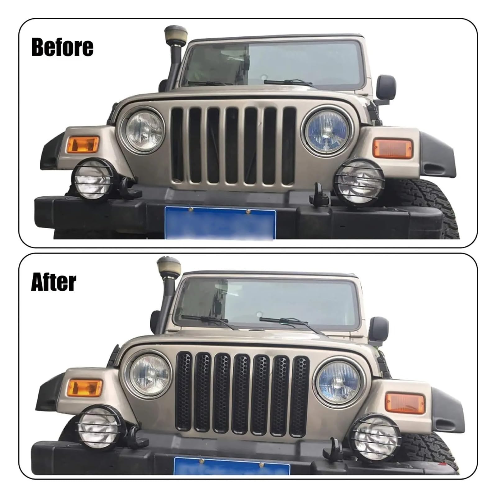 -Raccord:Pour Jeep Pour Wrangler TJ 1997 1998 1999 2000 2001 2002 2003 2004 2005 2006 Spécification:Matériel : ABSCouleur des verres : Fumé / AmbréNuméro de pièce :Gauche:Pour 1997-2000 Pare-chocs Light : 55055020AC, 55055020AD, 55055020AE, CH2520131Pour 2001-2006 Pare-chocs : 55156489AB , 55157033AA, CH2520141Pour marqueurs latéraux d’aile : 55155629AB, 55155629AC, CH2550120Côté droit :Pour 1997-2000 Pare-chocs Light : 55055020AC, 55055020AD, 55055020AE, CH2520131Pour 2001-2006 Pare-chocs : 55156488AB, 55157032AA, CH2521141Pour marqueurs latéraux d’aile : 55155628AB, 55155628AC, CH2551120Qunatité : 2pcs ou 4pcs Veuillez vous assurer que cet article conviendra à votre véhicule avant de l'acheter. Facile à installer et durable. Acheter pièces de pare-chocs pour une voiture Jeep Wrangler Veuillez vérifier attentivement que l'abat-jour correspond au véhicule lors de la commande. Couvercle de protection pour Jeep Wrangler TJ 1997... – Grandado Kit 4 Pièces Protection Phare Phares De Voiture, Pare-chocs Avant, Clignotants Et Pare Accessoire Jeep Wrangler Avant Quels sont les pare-chocs avant pare-chocs arrière pour la JEEP Wrangler II SUV Cabriolet (TJ) (2.4; 2.5; 4.0) 1996 - 2008 ? ... Combien coûte un nouveau pare-chocs pour la Jeep Wrangler TJ