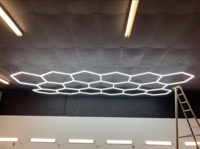 De plus, nos lampes de travail LED sont conçues for durer, garantissant des années de performances fiables et des effets lumineux époustouflants. Test : plafonnier LED en nid d'abeille DIKHEE 192W Sa zone d'émission lumineuse plus large et ses bandes décoratives colorées lui confèrent un look moderne et attrayant. Éclairage de garage DIY: Libérez votre créativité et transformez votre espace avec nos éclairages LED. Installation facile : Les lampes hexagonales peuvent être utilisées for décorer des bureaux, des entrepôts, des supermarchés ou d'autres murs design. Sublimez l'ambiance, captez l'attention et créez des éclairages époustouflants qui laisseront une impression durable. Éclairage éclatant: Laissez-vous séduire par la brillance de la lumière LED Honeycomb. Éclairage de garage à LED,Plafonnier LED pour garage, Entrepôt, Atelier Le plafond LED se fixe à l'aide de vis et de fermetures à glissière, et se fixe facilement au mur. CaractéristiquesNom du produit : lampe en nid d'abeilleTension : 110v-220vPuissance : 3-HEX : 105 WCouleur de la lumière : blanc pur 6500kSurface lumineuse : 20 mmFlux lumineux : 110-120 lm/WMatériau : PC + substrat en aluminium + puce LED + piloteLe forfait comprend :14-Hex Nombre de tubes de lampe : 1175 mm (12 pièces) 440 mm (57 pièces)5-Hex Nombre de tubes de lampe : 440 mm (24 pièces)1 jeu d'accessoiresRemarques :1., En raison de la mesure manuelle, veuillez prévoir un écart de 2 à 3 cm., 2., En raison du calibrage de votre écran, la couleur des articles présentés sur la photo peut être légèrement différente de la réalité. Installation facile: L'installation de votre éclairage LED en nid d'abeille est incroyablement simple. Kit luminaire LED pour garage ou autre espace professionnel qui comprend :21 barres de LED 44 cm 7 Y 11 angles à 45° 1 câble d'alimentation Transformateur Plafonnier LED Hexagonal Encastrable TimjAn Plafonnier LED Hexagonal En Nid D'abeille, Blanc Pur Lampe Encastrable Nid D'abeille Qu'il s'agisse d'illuminer votre salon ou de mettre en valeur les vitrines d'une salle d'exposition, notre éclairage LED a le pouvoir de donner vie à votre espace grâce à des effets visuels captivants qui émerveilleront tous vos invités.