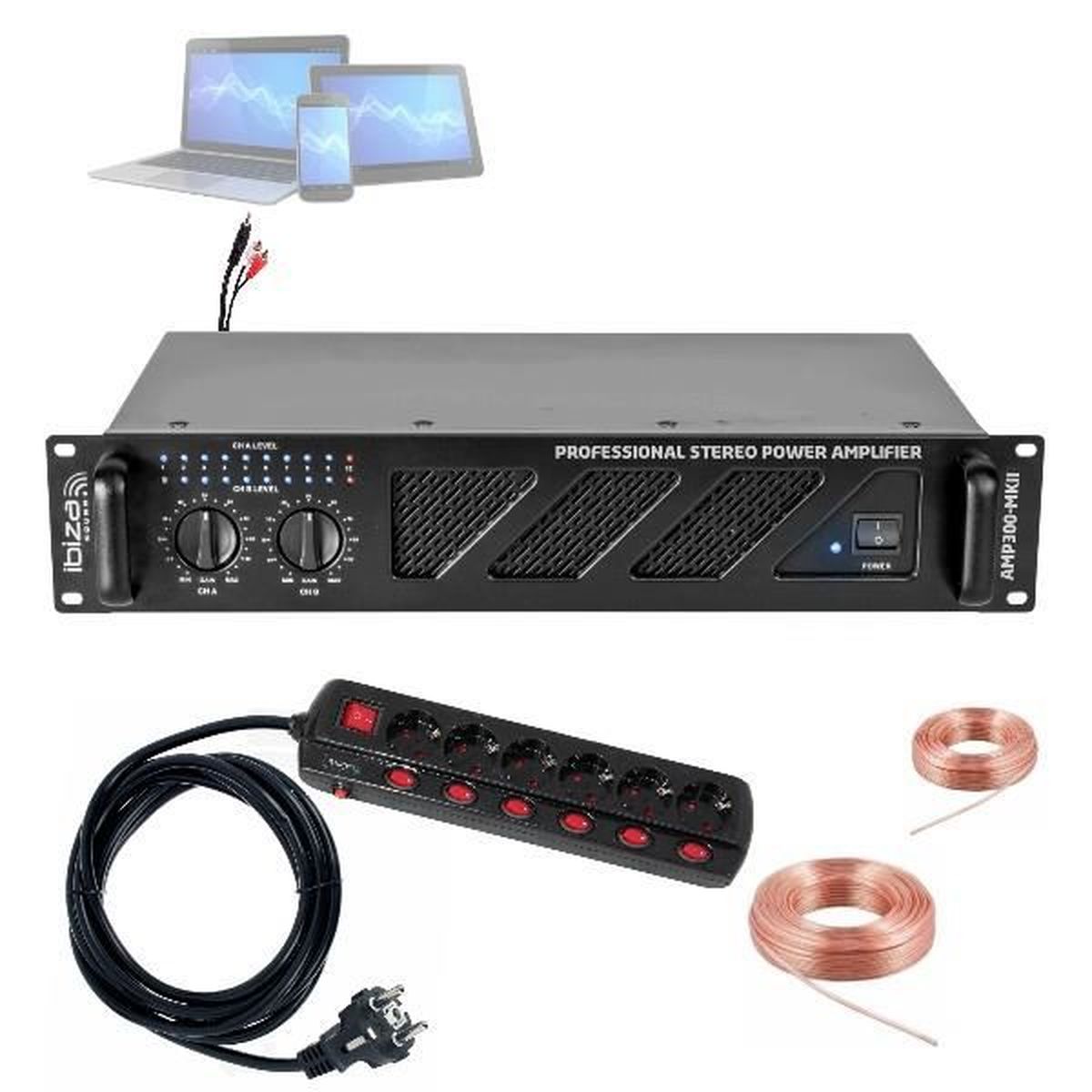 - Réglages de volume encastrés- Potentiomètres à crans- Refroidissement par ventilateurs- Protections électroniques contre les courts circuits, offset DC, les surcharges et thermiques- Temporisation au démarrage- Entrées: RCA et Jack 6,35mm- Sorties: type Speakon et borniers- Impédance: 4 à 8 Ohms- Vu-mètres à LED pour chaque canal., - Poids : 6., 5kg ✔️ 1 x Câble Haut Parleur 2 x 1., 5mm de 3m ✔️ 1 x Câble RCA/RCA ✔️ 1 x Câble PC/RCA Le refroidissement par ventilateurs assure des performances optimales même lors d'utilisations prolongées. AMPLI DE SONO IBIZA | BazarAfrique Côte d’Ivoire Remise de 21% - ️ Pack complet prêt-à-brancher avec ampli AMP800MKII, câbles HP, RCA et PC/RCA pour une installation sono facile ! - ️ Câble RCA/RCA et PC/RCA inclus, pour brancher votre table de mixage, platine CD, téléphone, ordinateur portable... - ️ Amplificateur 2x600W fiable et robuste avec ventilateurs de refroidissement et protections électroniques pour une performance... ✔️ Amplificateur 2x600W fiable et robuste avec ventilateurs de refroidissement et protections électroniques pour une performance optimale !, ✔️ Câble HP 2 x 1., 5mm de 3m pour une connexion parfaite entre votre ampli et vos haut-parleurs. IBIZA AMP800-MKII - Amplificateur de sonorisation 2 x 600W ✔️ Câble RCA/RCA inclus, pour brancher votre table de mixage, platine CD, etc. ✔️ Câble PC/RCA inclus, idéal pour connecter votre PC, tablette, smartphone, etc. Pack Ampli Sono Ibiza Amplificateur Sono Dj 2 X 600W Max IBIZA SOUND AMP-800 + Casque Audio Et Câble RCA De Liaison Sorties Speakon Borniers Ce pack inclut les câbles : Haut parleur 2 x 1., 5mm de 3m, RCA/RCA et PC/RCA Composition du pack : ✔️ 1 x Ampli 2 x 600W Ibiza Sound AMP800-MKII ventilé Nouvelle version améliorée de notre gamme d'amplificateurs très appréciée pour son excellent rapport qualité/prix. Profitez d'un son puissant et clair avec cet ampli conçu pour des performances fiables et sécurisées. Équipé de protections électroniques contre les courts-circuits et la surchauffe, il garantit une utilisation en toute sécurité.