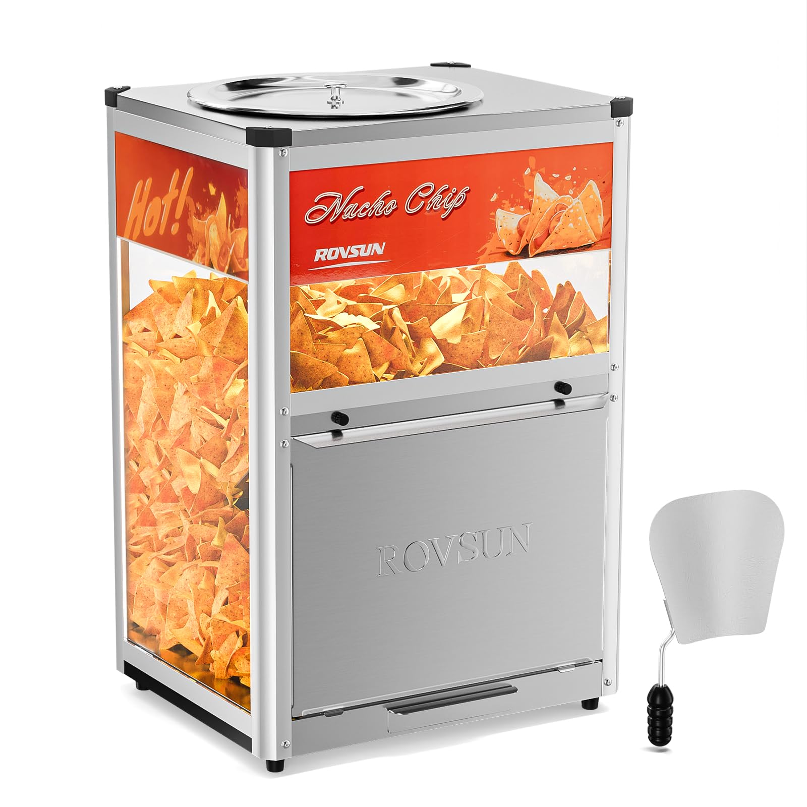 Machine à nachos - 45 L - Éclairage LED - Royal Catering Machine Réchaud Nachos Chauffage à nachos Température de chauffe max., : 58°C., Charge max., : 35 L. Bain Marie HENDI Machine à Nachos, Chauffe-nachos, Vitrine Chauffante Chauffe Plat Boîtier en acier inoxydable et verre trempé fumé. Deux portes à charnières avec une poignée à l'arrière permettent de remplir facilement la chambre - Charge maximale : 35 l Taille compacte – peut être utilisé dans diverses zones de travail - Avec une lumière LED pour une meilleure présentation des nachos Le chauffe-nachos Hendi est un ajout attrayant aux offres de restauration des cinémas, salles de jeux, food trucks, bars et toutes sortes d'établissements souhaitant servir ce snack. L'appareil est fabriqué à partir de matériaux de haute qualité et se caractérise par sa durabilité Snack Nachos Maïs Dessiné à La Main Nachos Jaunes Tortilla Fête Chili Équipé d'un bac collecteur de miettes. de 58 °C - Convient également au pop-corn A l'arrière - 2 portes à charnières, avec une poignée.