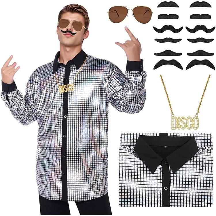 Parfaite pour les soirées disco ou les événements sur le thème des années 70, cette chemise à paillettes ajoute une touche de sex-appeal à votre tenue La chemise de loisirs n'est pas facile à froisser et durable, de sorte que vous avez une meilleure sensation de confort et de confort. Chemise Brillante Fête Années 70 ABEHIK Chemise Disco à Paillettes Pour Homme - Manches Costume Fête Thème 80s Design : la chemise boutonnée disco métallique à manches longues et paillettes brillantes pour homme apporte une touche vintage des années 70 à un look rétro sans effort. Si vous portez la chemise à paillettes métalliques, vous serez l'homme le plus attrayant et le plus accrocheur de la foule lorsque vous danserez. Conseils : laver délicatement à la main, suspendre pour sécher, ne pas utiliser d'eau de Javel ni repasser. Déguisement chemise disco noire homme luxe Déguisement disco La couleur de la photo peut être un peu différente de celle du produit réel en raison de l'affichage de la couleur des différents moniteurs. Tissus : les chemises pour homme sont fabriquées en tissu de haute qualité, super doux au toucher, respirantes, agréables à porter et n'irritent pas votre peau. Caractéristiques : cette tenue du Nouvel An a un col, des poignets et une patte de boutonnage contrastés pour briser la monotonie et le caractère terne de la tenue. La chemise est sertie de paillettes Vichy métalliques qui créent un joli look qui brille toujours.