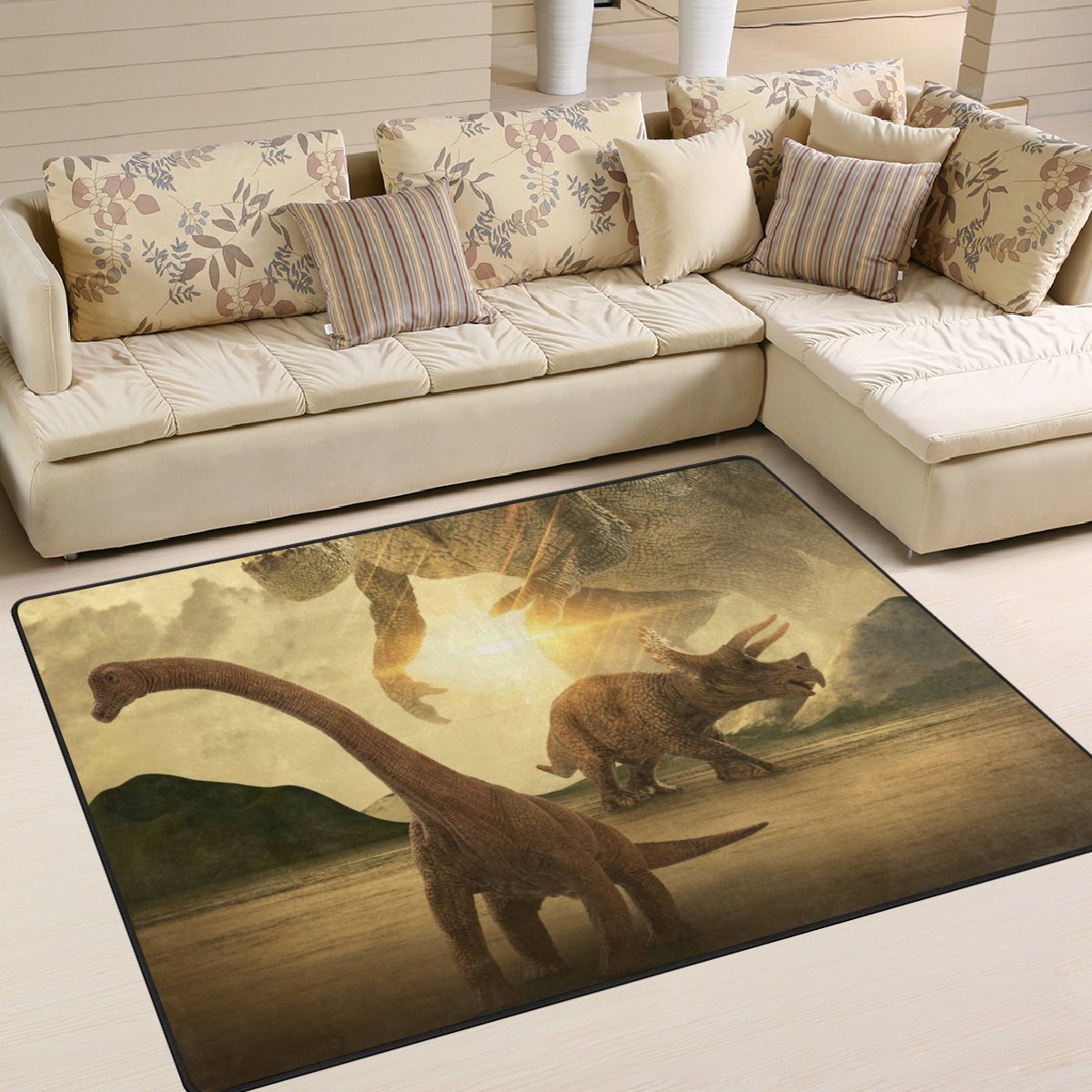 Le tapis de jeu dinosaure de 1,6 m x 1,2 m emmène les enfants dans un paysage préhistorique passionnant. Tapis dinosaure pour chambre d'enfants Parfait pour des heures de jeu et de découverte. Design détaillé : comprend des éléments fascinants tels qu'une cascade, un nid de dinosaure, un volcan avec de la lave et des squelettes de dinosaures fossilisés. Contenu pratique : comprend 2 bandes Velcro pour un rangement facile et 1 autocollant SkippiDoo. Tapis Voiture Enfant Jouet Dinosaure Avec Tapis De Jeu, Contient 19 Figurines De Dinosaures Tapis Jeu Figurines Schleich Matériau : 100 % polyester, antidérapant, adapté au chauffage au sol. Qualité supérieure : fabriqué en 100 % polyester, certifié Standard 100 par Oeko-Tex Antidérapant et sûr : grâce au matériau antidérapant, idéal pour jouer en toute sécurité - Convient également sur un chauffage au sol. Contenu de l'emballage : 1 tapis de jeu, 2 bandes Velcro, 1 autocollant., Certifié Oeko-Tex Standard 100., Tapis de jeu dinosaure avec scène préhistorique vivante : emmène les enfants dans un paysage préhistorique avec des rivières, des volcans et des restes de dinosaures. Tapis dinosaure rond décoratif • Tapis Modernes Dimensions généreuses : avec une taille de 1,6 m x 1,2 m, le tapis offre suffisamment d'espace pour des heures de plaisir de jeu. Tapis Chambre bébé | Joli Tapis