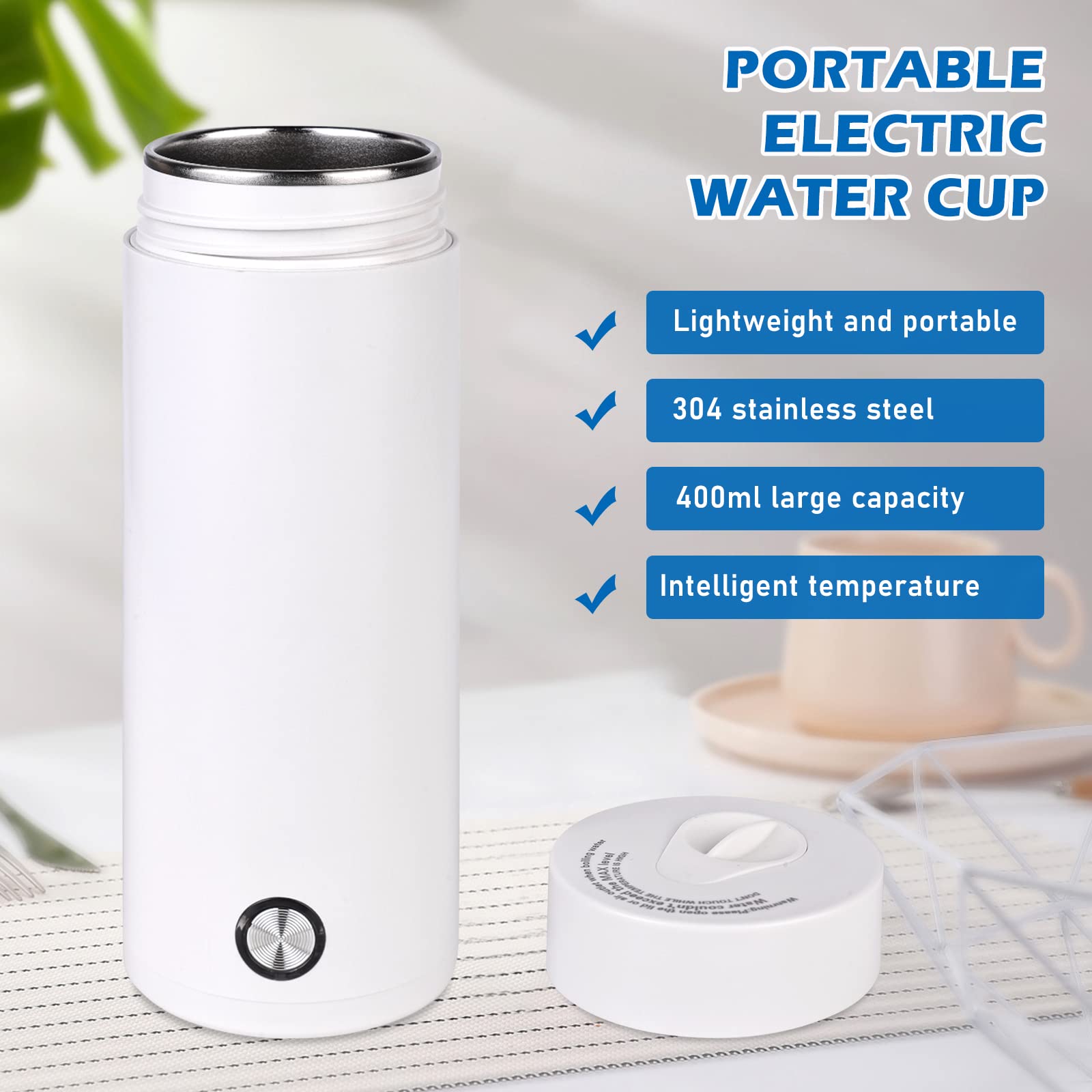 Facile à transporter : la bouilloire de voyage de 400 ml est pratique et légère, ne pèse que 500 g, dimensions : 7,5 x 7,5 x 20,5 cm. - Veuillez ne pas utiliser le produit sans eau. Dimensions : 7,5 x 7,5 x 20,5 cm. Design sûr : mini bouilloire électrique à chauffage rapide, couvercle de cryptage anti-fuite, arrêt automatique lorsque l'eau est bouillie. Utilisez une conception d'isolation thermique à double couche, sûre et non chaude Le cordon d'alimentation peut être déconnecté de la bouilloire pour rendre le rangement plus pratique. Peut être transportée dans un sac à dos ou une valise pour que vous puissiez l'emporter avec vous en voyage. Bouilloire portable cadeau pour vos amis qui aiment boire de l'eau chaude/du café, une mère qui a toujours besoin d'eau chaude pour le lait de bébé, etc. Tension nominale : 220 V - 50 Hz., Puissance : 300 W., Capacité : 400 ml., Prise : UE. - Si vous n'avez pas besoin de maintenir la température au-dessus de 80 °C, débranchez la prise d'alimentation après la cuisson. Matériau : la bouilloire de voyage est fabriquée en acier inoxydable 304, qui peut être utilisée pendant une longue période et n'est pas facile à corroder et à rouiller. Cuisson rapide en 5 minutes : interrupteur à clé à un bouton, appuyez pour passer en mode eau bouillante après l'allumage, la cuisson prend environ 4 à 5 minutes. Vegena Bouilloire Électrique De Voyage, Mini Bouilloire Electrique - Ouvrez le couvercle après 3 minutes après l'arrêt automatique pour éviter les brûlures causées par l'eau bouillante. Bouilloire Pliable Vegena Bouilloire Électrique De Voyage, Mini Bouilloire Electrique 500ml Bouilloire Électrique Portable Mini Bouilloire 4 Temperatures Bouilloire De Voyage En Acier Inoxydable Pour Thé, Café, Lait Petite Bouilloire Electrique Petite bouilloire portable Vegena parfaite pour ceux qui ont besoin de boire du thé chaud tous les jours, du café instantané ou de préparer du lait pour bébé. Idéale pour un usage personnel, petite et portable, et peut ajouter jusqu'à 350 ml d'eau lorsqu'elle est chauffée. 1 câble d'alimentation européen. Fonctionnalités: - Petite bouilloire portable : la doublure intérieure est en acier inoxydable 304 de haute qualité, sain, sûr et pas facile à cultiver. - Cette bouilloire portable n'a besoin que de 4 à 5 minutes pour faire bouillir l'eau. Le scellage à long terme peut avoir une odeur. Moins de temps d'attente, gain de temps, obtenez de l'eau chaude à tout moment. Temps de cuisson : 4 à 6 minutes. - Soyez prudent lorsque vous faites bouillir de l'eau chaude à proximité des enfants. Marque. Vegena · Capacité. 400 Millilitres · Matériau. Acier inoxydable · Couleur. Blanc · Caractéristique spéciale. Couvercle bouton-poussoir, Marche · Informations... - Le fond de la bouilloire est en silicone antidérapant qui augmente la friction et la rend plus stable. Contenu de la livraison : 1 bouilloire électrique portable. Pour que vous puissiez profiter de l'eau chaude à tout moment, idéal pour les trajets en voiture, les voyages d'affaires, les voyages. Le fond de la bouilloire est en silicone antidérapant qui augmente la friction et la rend plus stable.