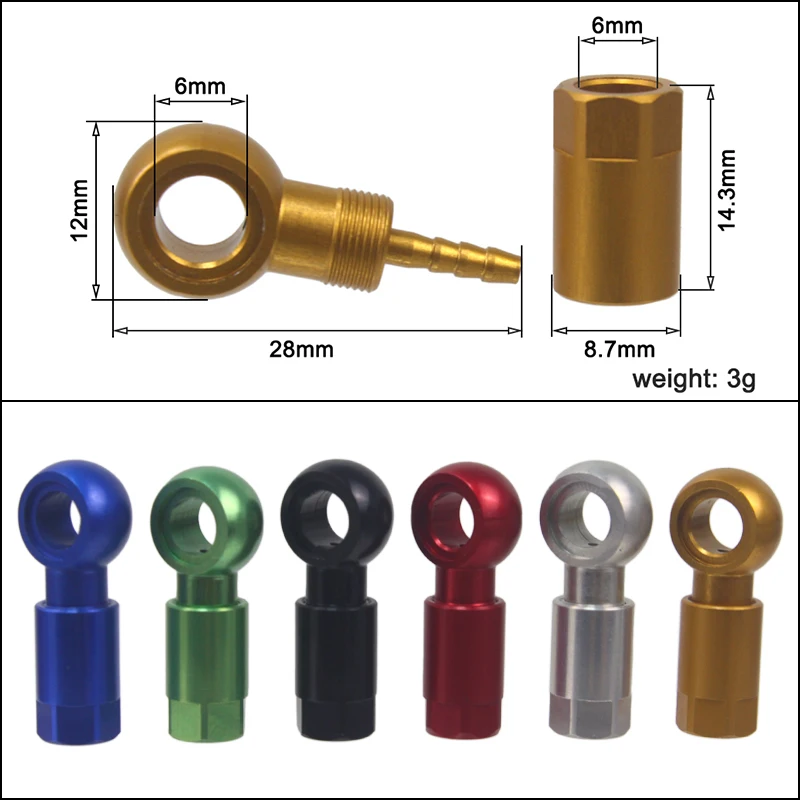 VÉLO VÉLO HYDRAULIQUE Raccord De Tuyau Insert Banjo Pour Magura MT4 MT6 Raccords Tuyau Frein 28 Mm Joints étanchéité KIT DE RACCORDS De Tuyau De Frein Hydraulique Pour NUTT A1 A2 A5D Connexion Tuyau Freinage [Composants compatibles] : spécialement conçus pour les systèmes de freinage hydrauliques Magura, ces kits de connecteurs offrent un remplacement direct pour l'équipement d'origine. [Kit de connecteur de frein hydraulique] : ce kit olive de frein hydraulique professionnel pour vélo est spécialement conçu pour les freins hydrauliques Magura, avec une construction en alliage d'aluminium de haute qualité qui résiste à une utilisation fréquente et aux conditions de conduite difficiles. Chaque composant est usiné avec précision pour s'adapter parfaitement, minimisant le risque de fuite de liquide même dans des situations de haute pression lors de la conduite sur des terrains difficiles. Zeroupshop Lot de 2 raccords de tuyau de frein hydraulique en aluminium pour vélo Magura Banjo avec anneaux d'étanchéité et composants d'insertion : : Sports et LoisirsÀ propos de cet article [Kit de connecteur de frein hydraulique Ce traitement de surface prolonge considérablement la durée de vie des connecteurs par rapport aux alternatives non traitées. Frein complet vélo Magura MT4 eStop (levier 2 doigts Installation facile : les connecteurs de 28 mm de longueur sont soigneusement conçus pour une installation simple, rendant l'entretien des freins plus accessible pour les mécaniciens domestiques. Le kit complet comprend 2 olives, 2 inserts de raccordement, 2 écrous de tuyau et 4 joints d'étanchéité en caoutchouc pour deux installations complètes de conduite de frein.