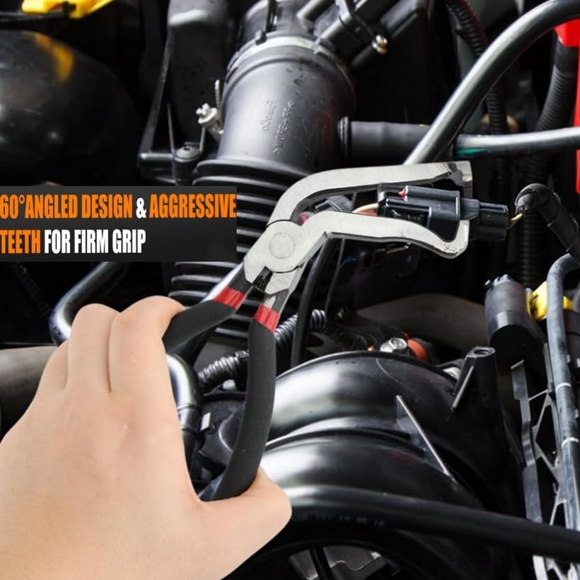 Compact et essentiel pour chaque boîte à outils : ce kit de pince de déconnexion électrique est léger et portable, se glisse facilement dans votre sac à outils automobile pour les réparations en déplacement. Rapide, simple et efficace : que vous soyez un technicien professionnel ou un amateur de voiture, cet ensemble d'outils de déconnexion de conduite de carburant change la donne pour tout atelier ou garage. Ils sont compacts et légers, ce qui les rend faciles à ranger dans votre boîte à outils ou à garder dans la voiture en cas d'urgence. Outils automobiles essentiels : ce lot comprend trois pinces de déconnexion électriques conçues pour diverses applications automobiles, ce qui le rend parfait pour les professionnels et les amateurs de voitures. Performance durable : fabriquée en acier chromé avec des mâchoires forgées à froid qui durent plus de 15 000 cycles; ces pinces disposent d'un revêtement d'oxydation triple... Une solution polyvalente pour les mécaniciens, les électriciens et les bricoleurs. C'est un outil essentiel pour tous ceux qui veulent garder leur voiture en pleine forme sans tracas. Le crochet à l'extrémité est conçu pour déverrouiller les languettes sur les connecteurs, et avec la pointe pointue, vous pouvez les saisir et les séparer en un seul mouvement fluide. Retirez facilement les connecteurs électriques push-lock sur les injecteurs de carburant, les bobines d'allumage, les capteurs de flux d'air, et plus encore Les poignées sont conçues dans un souci de confort. Si vous avez affaire à des conduites de carburant ou des connecteurs électriques, ces pinces rendent le travail super facile. Design ergonomique et multifonction : la pince électrique dispose d'une poignée ergonomique pour une utilisation facile, tandis que le design incurvé s'attaque aux espaces restreints, les pinces droites ne peuvent pas atteindre. Construction durable et fiable : fabriquée en acier au carbone de haute qualité, nos pinces à déconnexion électrique sont conçues pour résister à la rouille, à l'usure et à une utilisation intensive. Le séparateur à double tête offre plusieurs angles d'accès, ce qui le rend parfait pour les applications de pinces à clip et les travaux de pince à tuyau tenaces. Pas besoin de deux mains : ces pinces facilitent la tâche rapidement. Ainsi, que vous travailliez dans un garage ou tout simplement à la maison, ces pinces peuvent faire le travail. Outil de Démontage de Conduite de Carburant - DILWE - Pince Ergonomique De plus, la forme ergonomique signifie que vous pouvez les tenir plus longtemps sans vous fatiguer, parfait pour les travaux qui prennent un peu plus de temps. Ils ne rouillent pas facilement, et les bords tranchants restent tranchants grâce à un traitement à haute température. Utilisez-le pour les bougies d'allumage, les tuyaux de refroidissement, les conduites de carburant, les faisceaux de câblage et d'autres petits composants. Ces pinces à connecteur électrique et pince de retrait de tuyau fonctionnent ensemble pour rationaliser les réparations, ce qui en fait un incontournable pour toute collection d'outils automobiles. Kit Pinces Spéciales Auto Professionnel Lot De 3 Pinces De Déconnexion électrique Efficaces, Légères Pinces Automobile Connecteurs Que vous utilisiez des conduites de carburant, un retrait de tuyau ou des connecteurs électriques, cet ensemble d'outils est ce qu'il vous faut. Ils ont une poignée antidérapante, de sorte que vous n'aurez pas à vous soucier qu'ils glissent de vos mains pendant que vous travaillez. Les poignées revêtues de caoutchouc assurent une prise en main confortable et antidérapante, protégeant vos mains lors d'une utilisation prolongée.