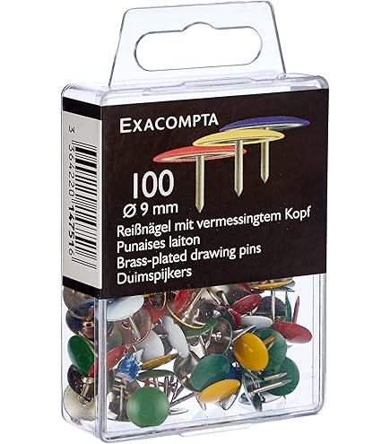 Matériel Affichage Mural 40 Punaises Cristal Exacompta - Pointe Exacompta - boîte de 100 punaises 9mm - couleur laiton - La Poste Exacompta Boîte de 40 punaises - hauteur de pointe 7mm - 10mm de diamètre</li><li>Boîte distributrice refermable. Livré en boîte distributrice refermable. Facile à enlever grâce au débord de la tête plastique. Pointe extra fine et solide en acier nickelé qui n'endommage ni le document, ni le support Exacompta - Réf. 14032E - Boîte de 40 punaises - Hauteur de la pointe 7 mm - Diamètre 10 mm - Pour fixer cartes, photos, posters, documents, cadres, guirlandes - Couleur cristal translucide : Exacompta Facile à enlever grâce à une tête de forme spéciale.