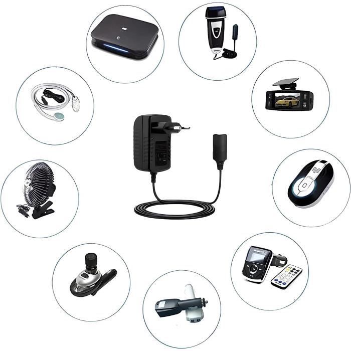 Parfait pour le camping, les road trips ou une utilisation mobile au bureau. Adaptateur fonctionnel : la prise murale pour allume-cigares est fonctionnelle pour convertir l'alimentation domestique en 12 volts CC pour alimenter vos produits et accessoires 12 volts Il prend en charge une tension d’entrée de 110–240V AC et fournit 12V DC jusqu’à 1A maximum, idéal pour les appareils à faible consommation tels que GPS, dashcams, lecteurs MP3 pour voiture, émetteurs FM Bluetooth ou ventilateurs de voiture. Prêt à l’emploi grâce à la prise standard EU, sans adaptateur supplémentaire. Non adapté aux aspirateurs, compresseurs, chauffages, purificateurs d’air ou autres appareils à haute puissance. Conseils importants pour une utilisation sécurisée – Convient uniquement aux appareils de tension nominale 12V DC et courant maximal 1A, puissance totale maximale 10 W. L’adaptateur est équipé de protections intégrées contre les surcharges, les courts-circuits et les incendies, garantissant un fonctionnement sûr et continu. Adaptateur allume-cigare pour voiture AC 220V à DC 12V convertisseur de Design de voyage optimal & gain de place – L’adaptateur compact et léger se glisse facilement dans n’importe quelle pochette ou tiroir. Son design compact et léger permet un transport facile et une utilisation à domicile, en voyage ou en camping. Large compatibilité des appareils & utilisation facile – Convient à tous les appareils DC 12V/1A avec prise allume-cigare tels que mini-réfrigérateurs, ventilateurs de voiture ou émetteurs FM Bluetooth. Avec cet adaptateur allume-cigare 12V 1A, vous pouvez convertir en toute sécurité le courant domestique en courant continu pour vos accessoires automobiles. Il prend en charge une tension d'entrée de 110-240V AC et fournit 12V DC jusqu'à 1A maximum, idéal Adaptateur Prise Voiture Vers Secteur ADAPTATEUR PRISE ALLUME-CIGARE 12V 2A Convertisseur Adaptateur AC/DC Bloc Alimentation Sécurisé Allume-cigare Veuillez noter que les appareils à haute puissance tels que aspirateurs, compresseurs ou chauffages ne doivent pas être connectés.