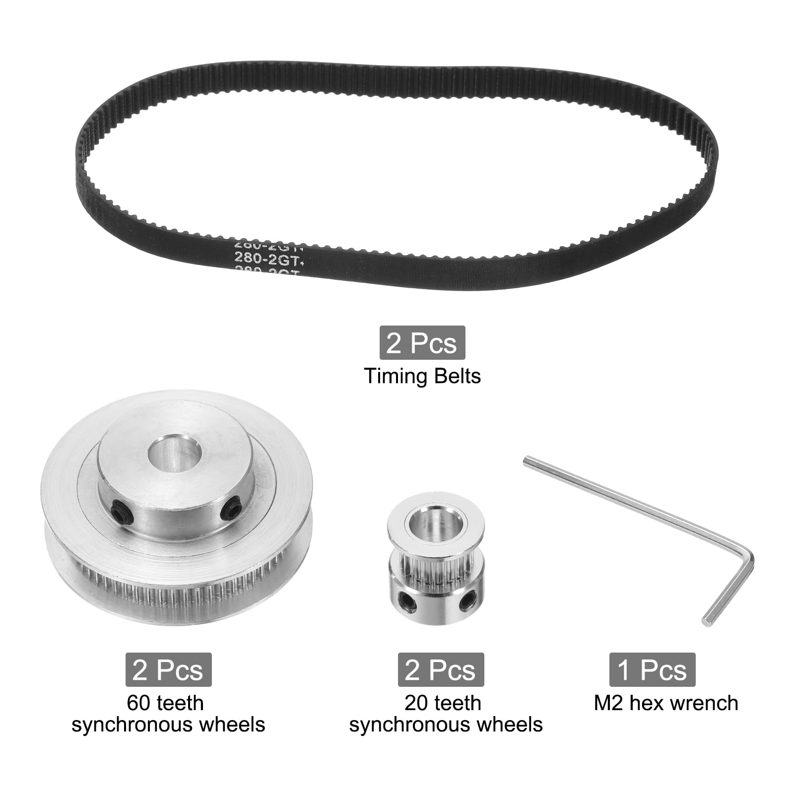Roue Synchrone 20 Dents / 60 Dents Alésage 8 Mm + Courroie De Distribution 2gt 610 8 95070602 Poulies Synchrones GT2 5 Pièces Courroie Poullie 2gt 20 Dents Courroie De Distribution Poulie Poulie Largeur 10 Mm 5mm Alésage Sans Dents Pour Imprimante Poulie Synchrone Alésage 8mm 10mm Avec un pas de dent précis pour une transmission fluide, offrant une efficacité de transmission élevée et des avantages d'économie d'énergie. Transmission Fiable: Assure un fonctionnement sans glissement, maintenant un rapport de vitesse constant pour des performances fiables. Conception Conviviale: Avec une structure simple facile à installer, assembler et démonter, offrant commodité et flexibilité lors de la configuration et de la maintenance. Facile à monter et à démonter, avec roue synchrone 20/60 dents et 3 courroies de distribution Largement utilisé : largement utilisé dans les fraiseuses, les machines de formage d'engrenages, les perceuses, les machines de cuisson et autres occasions de transmission mécanique Application Polyvalente: Convient à une large gamme d'applications de transmission de machines industrielles, y compris les fraiseuses, les perceuses, les machines à tailler les engrenages, et plus encore, offrant polyvalence et fiabilité dans divers environnements. Contenu Du Colis: Vous recevrez 1 poulie 8mm alésage, 2 vis M4, et une clé. · Matériau: La poulie synchrone est fabriquée en alliage d'aluminium de bonne qualité... Spécification:Couleur: Tonalité ArgentMatériau: Alliage d'AluminiumNombre de dents: 20T&60TTaille de la Roue Synchrone GT-2 60 Dents: 10x42x23mm(Diamètre Intérieur*Diamètre Extérieur*Épaisseur)Taille de la Roue Synchrone GT-2 20 Dents: 8x16x19mm(Diamètre Intérieur*Diamètre Extérieur*Épaisseur)Largeur de la Rainure: 11mm (60T&20T)Dimension de la Courroie de Distribution: 200x10mm(Longueur*Largeur) Fonctionnement Sans Effort: Avec un pas de dent précis pour une transmission fluide, offrant une efficacité de transmission élevée et des avantages d'économie d'énergie.