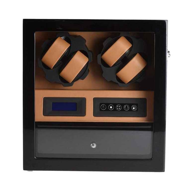 Pour chaque mode d'enroulement, le rotor (niveau sonore inférieur à 5 dB) tourne à 6,5-8,5 tr/min. Mcbazel Remontoir Automatique Rectangulaire en Cuir PU pour 4 Montres, Double Cadran, Moteur Ultra-Silencieux, 4 Modes de Réglage et Lumière LED, Alimentation USB/Pile – Noir Faits saillants principaux Caractéristiques : 1., 100 % neuf., 2., Vitrine de rangement légère et durable., 3., Finition avec des lignes lisses et un bel artisanat., 4., Les pièces intérieures des montres automatiques sont construites pour suivre la gravité., 5., Les belles boîtes à montres sont aussi décoratives et sophistiquées que les montres que vous portez., 6., Il a une plaque en verre comme fenêtre pour voir l'horloge lorsque vous tournez et sert en même temps de vitrine., 7., Solution d'affichage confortable et pratique pour les montres., 8., Parfait pour les magasins, les marchés, etc., 9., Idéal pour un usage personnel à la maison, pour protéger vos montres lorsque vous ne les utilisez pas. Polyvalence : ce boîtier de montre peut être utilisé comme vitrine de rangement/vitrine légère et durable. Ou utilisez-le à la maison pour ranger des montres précieuses pour éviter les rayures. En raison du design de la fenêtre en verre sur le dessus, il peut y avoir un effet d'exposition lorsqu'il est utilisé dans un centre commercial. Pause pendant 6 minutes et répétitions. ProCase Remontoir Montre Automatique, Watch Winder, Boîte Montre Très décoratif et durable. Fonction minuterie : Tourne dans le sens des aiguilles d'une montre pendant 2 minutes., Pauses pendant 6 minutes. Matériaux de qualité supérieure : cette boîte à montres est fabriquée en bois de qualité supérieure, peinte à la main, de belles boîtes à montres sont aussi décoratives et compliquées que les montres qu'elles portent. Le moteur japonais est ultra silencieux - parfait pour la chambre ou le bureau. Le boîtier en PU et verre acrylique protège de la poussière et des rayures. Les... Boîtier Remontoir 4 Montres Silencieux Sepano Double Remontoir Automatique Pour 4 Montres Moteur Mabuchi Remontoir De Montre Automatique Pour chaque mode d'enroulement, le rotateur (niveau sonore inférieur à 5 dB) tourne 6,5 à 8,5 tours/minute., Contenu : 1 remontoir., 1 bloc d'alimentation.