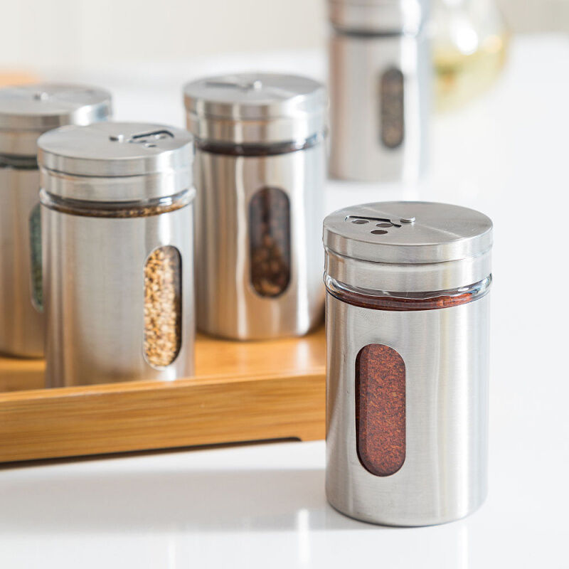 Shaker à épices en acier inoxydable, boîtes d'assaisonnement rotatives Shakers En Acier Inoxydable - Salières Et Poivrières Shakers à épices Utilisations multiples : convient à divers environnements, y compris la cuisine et la table à manger, cette salière de camping est idéale pour un usage quotidien et des occasions spéciales, mini poivrière, mini pots à épices Conservez vos épices dans le flacon à épices pour les garder au sec, propres et hygiéniques et rendre les aliments cuisinés plus délicieux. [Design rotatif à trois trous