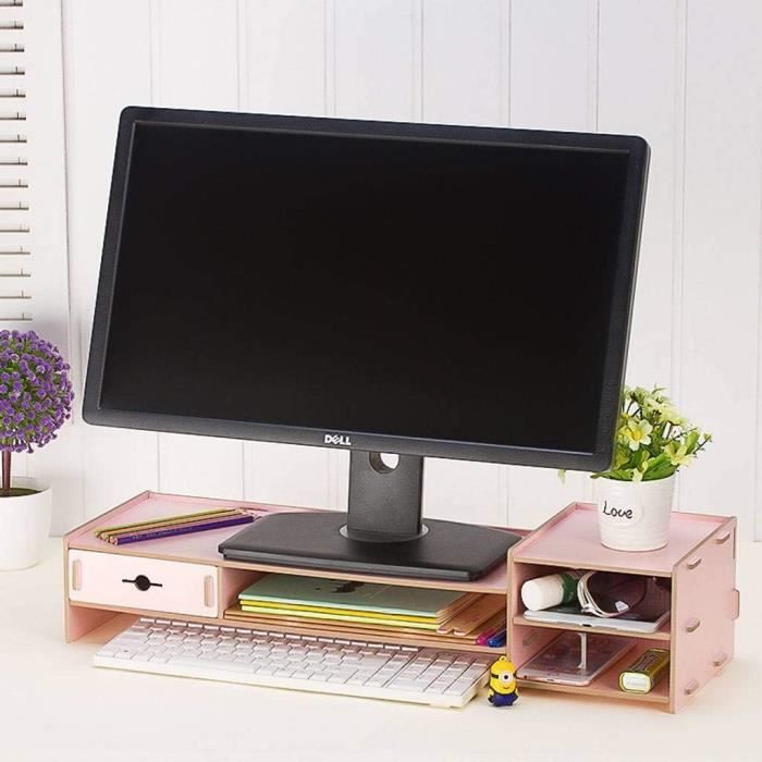 Forme : angle droit Type de montage : plateau de table Épaisseur de la plaque : 9 mm, 5 mm. Processus : coupe, placage Style : moderne Assemblage requis : oui. Organisation pratique : le support pour écran d'ordinateur dispose d'un tiroir verrouillable + 2 compartiments pour stylos, documents et petites pièces. Support de moniteur ergonomique : notre support de moniteur en bois à hauteur idéale réduit les tensions au cou et améliore la position assise. Charge totale : 2,5-5 kg Poids brut : 1,71 kg., Poids net : 1,6 kg. Ajustement universel Le support de moniteur est adapté à de nombreux écrans de PC, ordinateurs portables, ordinateurs portables ou imprimantes, offre plus d'espace sur votre bureau. Le présentoir de bureau met également en valeur votre bureau, salon ou chambre. Les pieds en liège sur le bas du support pour ordinateur portable assurent un maintien sûr et protègent vos meubles des rayures Support Ordinateur Avec Tiroir Le design ergonomique offre un angle de vision parfait pour un travail détendu - Idéal pour le bureau et le bureau à domicile Montage facile : montage rapide grâce aux instructions fournies (français non garanti) et aux accessoires complets. Construction en bois robuste : fabriqué en bois MDF de qualité supérieure avec une capacité de charge de 5,5 à 11 kg. Autres accessoires pour le montage., Remarques : 1., Veuillez vérifier soigneusement la taille avant de commander., 2., Veuillez noter que les décorations, ordinateurs et autres objets montrés sur l'image ne sont pas inclus dans le produit., 3., Les mesures étant prises à la main, les tailles indiquées peuvent varier de 1 à 3 cm. Support écran Bureau Bois HKPLDE Support De Moniteur En Bois Stable Avec Tiroir Ergonomique Support écran Bois Rangement Avec notre support d'écran, tu peux travailler dans une position naturelle et confortable qui favorise ta santé et ta productivité. Élégance et gain de place : organise ton espace de travail Contenu de la livraison : 1 support pour écran d'ordinateur., 2 boutons. Caractéristiques : Matériau : MDF Couleur : bois. 1 manuel de montage en anglais (français non garanti). Utilisation : Ce produit est adapté pour les maisons, les écoles, les bureaux, etc. Dimensions du tiroir : 27 x 4,5 cm. Support de téléphone portable intégré et trous pour stylo pour plus de confort lors du travail