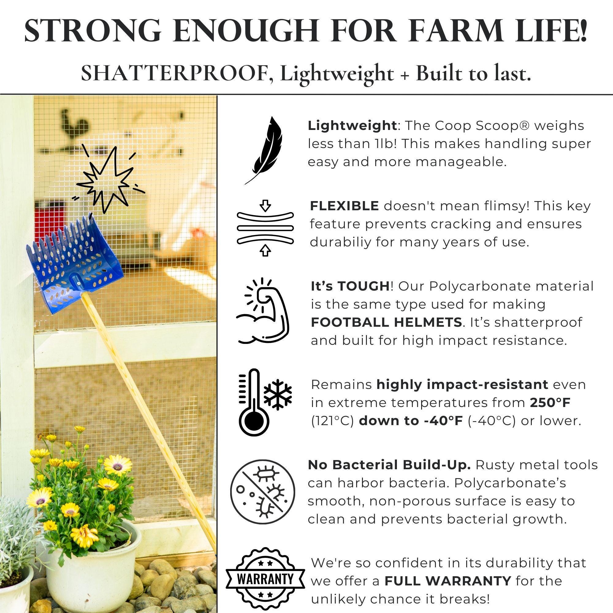 DASIAUTOEM Accessoire De Poulailler - Outil De Nettoyage - Poignée En Bois - Pour Poulailler - Pour Poulailler - Séparation Des