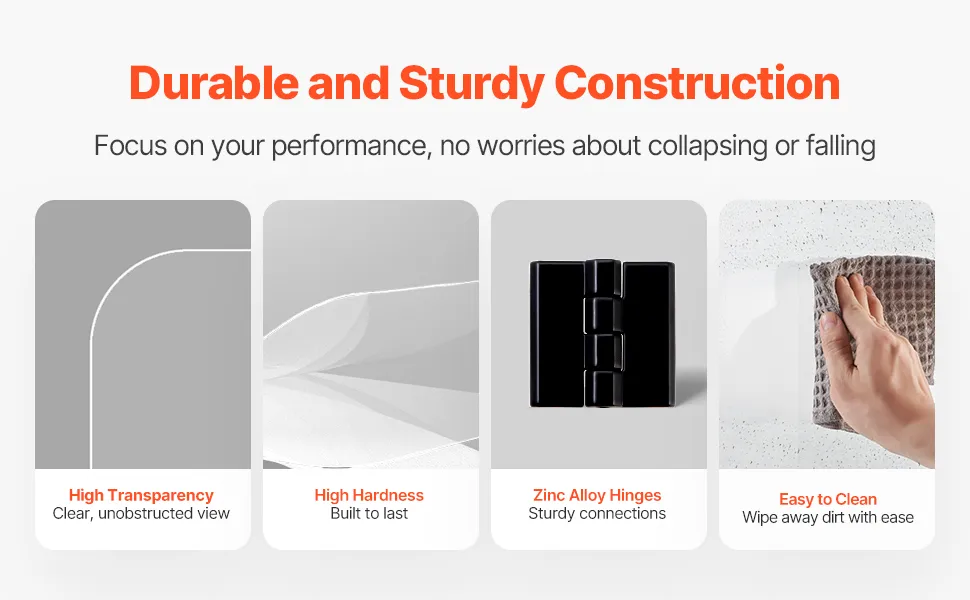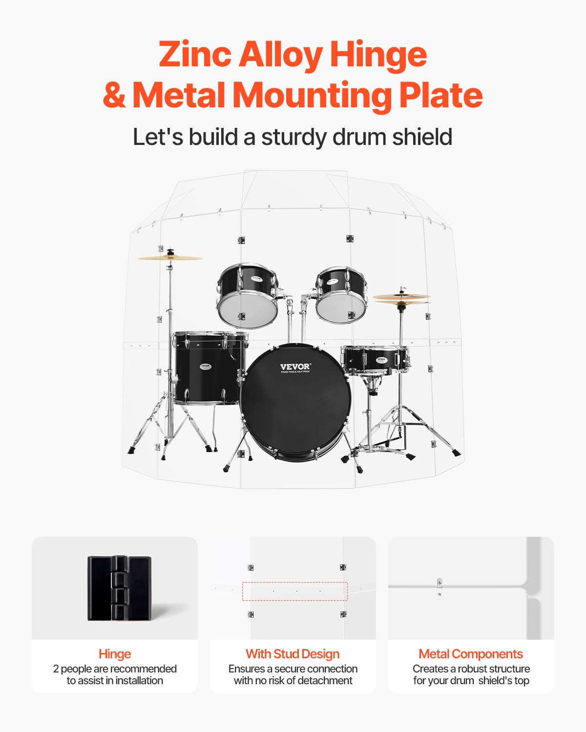 Conception de charnière robuste : La cage de batterie en acrylique est dotée de charnières en alliage de zinc durables qui relient solidement les panneaux, offrant une configuration stable. Panneaux en acrylique de haute qualité : Les panneaux de protection de batterie en acrylique durables offrent une excellente isolation sonore, sont résistants aux rayures et faciles à nettoyer. Pour les batteurs pros ou amateurs ! Ce bouclier de batterie VEVOR améliore le son sur scène et réduit les interférences. 5 déflecteurs et panneaux en acrylique de 152,4cm de haut pour une couverture complète Ashata mini piano à pouce Thumb Piano 8 touches Mini Portable Acrylique Matériel Décoration... Les charnières permettent également des angles réglables, vous permettant de personnaliser la couverture du bouclier en fonction de la configuration de la scène, garantissant des performances sonores fiables et la sécurité de la scène YIDELAI Charnières invisibles (1 paire) Charnières invisibles en alliage de zinc Angle d Installation rapide et transport facile : Notre kit de protection pour batterie comprend 10 panneaux, 16 charnières et tous les outils nécessaires, avec des instructions claires pour un montage et un démontage faciles. Il est compatible avec les grosses caisses, les caisses claires, les mixeurs, les enceintes DJ et bien plus encore, contribuant ainsi à rehausser le professionnalisme de votre configuration scénique Bouclier De Batterie Acrylique VEVOR Bouclier De Batterie, 61x152,4 Cm, Barrière Sonore De Tambour Portable En Acrylique, Avec Charnières En Alliage De Zinc Et Déflecteurs, Pour Salles De Concert, Festivals De Musique, Entraînement Protection Scène Batteur Avec une grande transparence, ils offrent une vue claire à 360 degrés, permettant aux batteurs d'interagir avec les membres du groupe et le public, améliorant ainsi la présence sur scène Que vous soyez un batteur professionnel ou un passionné, ce bouclier de batterie améliore la qualité du son et la présence sur scène. Excellent contrôle du volume : Chaque bouclier de batterie est composé de deux panneaux de 152,4 cm de haut, 61 cm de large et 3 mm d'épaisseur.