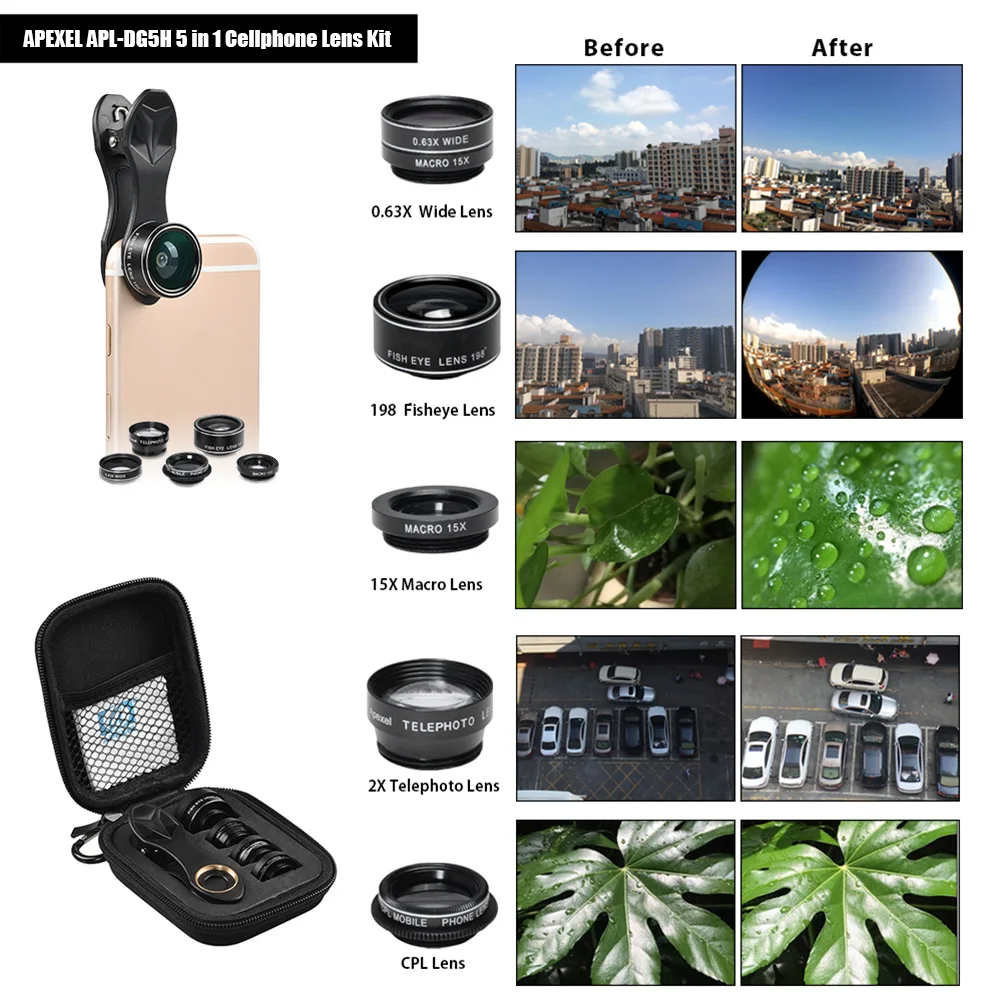 1 * Zoom téléobjectif 2X 1 lentille polarisée CPL., 1 objectif kaléidoscope., 1 objectif Starburst., 1 organiseur d'objectif. Contenu de l'emballage : 1 objectif fisheye 198°. 【Objectif Professionnel HD】: Pour les photographes passionnés de smartphones soucieux d'obtenir des photos de haute qualité, les objectifs valent la peine d'être achetés. 【Clip antidérapant et anti-rayures】: design à clip convivial. Les lentilles intégrées sont fabriquées en matériau fragile hautement translucide. Portable et Pratique]Notre kit d'objectif pro pour iPhone, téléphones Android, Samsung, Google Pixel 5, et la plupart des autres smartphones, est un ami parfait pour vous de prendre, sans distorsion, coin sombre, réflexions, lens flare, d'autres artefacts Kit Objectif Universel Smartphone Téléobjectif Fisheye Grand Angle Et 2 Macro Le clip est équipé d'un rembourrage en caoutchouc pour éviter d'endommager votre téléphone 【Portable et Pratique】Notre kit d'objectif pro pour iPhone, téléphones Android, Samsung, Google Pixel 5, et la plupart des autres smartphones, est un ami parfait pour vous de prendre, sans distorsion, coin sombre, réflexions, lens flare, d'autres artefacts. Nos lentilles sont fabriquées avec plus de couches de verre de qualité cinéma HD. L'objectif macro 15X offre une profondeur de champ cinq fois supérieure à celle des objectifs standard, tandis que l'objectif grand angle 0,63X présente une distorsion nettement inférieure à celle des objectifs 0,65X courants inclus dans la plupart des kits Fisheye 198° Grand Angle 0.63X Macro 15X Kit D'objectif 3 En 1 Pour Téléphone Portable, Objectif Macro Fisheye Grand Angle Noire Accessoires Photo Et Vidéo Pour Téléphone Portable Ensemble d'Objectifs Polyvalents] : Ce kit d'objectifs pour téléphone portable offre 6 types différents d'objectifs, comprenant un fisheye à 198°, une combinaison grand angle macro, un téléobjectif, un filtre CPL, et un kaléidoscope à six facettes Manipulez doucement pour éviter les chutes., 4., Soyez prudent lorsque vous tournez les objectifs et l'appareil afin de ne pas endommager l'appareil photo du téléphone. Caractéristiques du produit : 1., Objectif fisheye 198° pour des photos panoramiques époustouflantes., 2., Le grand angle 0,63X + la combinaison d'objectifs macro 15X est adaptée pour de grands paysages et des petits détails., 3., Le téléobjectif rapproche les objets distants., 4., Le CPL réduit les reflets et renforce les couleurs., 5., L'objectif kaléidoscope hexagonal crée de fantastiques motifs multiples. Filmez tous les moments mémorables pour vous Dimensions du sac à poussière zippé : 13 x 9 x 4 cm. 1 manuel (français non garanti)., Remarque : 1., Assurez-vous que l'appareil photo du téléphone portable et la surface des objectifs sont propres pour éviter les traces de doigts et les dépôts de poussière., 2., Après utilisation, mettez le couvercle de protection et rangez-le immédiatement dans le sac de rangement., 3., La structure fermée des lentilles empêche l'eau de pénétrer dans les lentilles. Contrairement à d'autres lentilles en verre bon marché qui peuvent dégrader vos images, notre lentille HD professionnelle réduit les reflets et les images fantômes causés par les réflexions avec peu ou pas de distorsion sur l'ensemble du cadre
