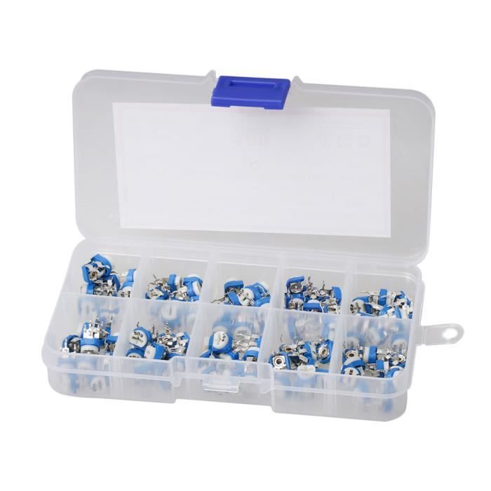 Opencircuit Potentiomètre linéaire 50K Ohm - 2 pièces Type de montage: trou traversant. Potentiometre 100k Kit Assorti Potentiomètre Potentiomètre Tondeuse à Résistance 50V RM065 Potentiomètre Cermet Trou Traversant Caractéristiques:Résistance: 100/200/500/1k/2k/5k/10k/20k/100k/500k ohm. 66g Liste des packages:50 * résistance 1 * boîte de rangement Résistance: 100/200/500/1k/2k/5k/10k/20k/100k/500k ohm. Fafeicy s'est développé dans l'une des principales marques de produits industriels et domestiques et fournit les articles qui ne sont pas trouvés dans le supermarché Thom063-Potentiomètre de tondeuse Trimpot, résistance Matériau résistif: cermet. Spécification:Couleur: bleu Matériau: plastique Résistance: 100/200/500/1k/2k/5k/10k/20k/100k/500k ohm Quantité: 50 (5 pour chaque type) Puissance: 1/4W Tolérance: ± 10% Poids: env. Quantité: 50 (5 pour chaque type).