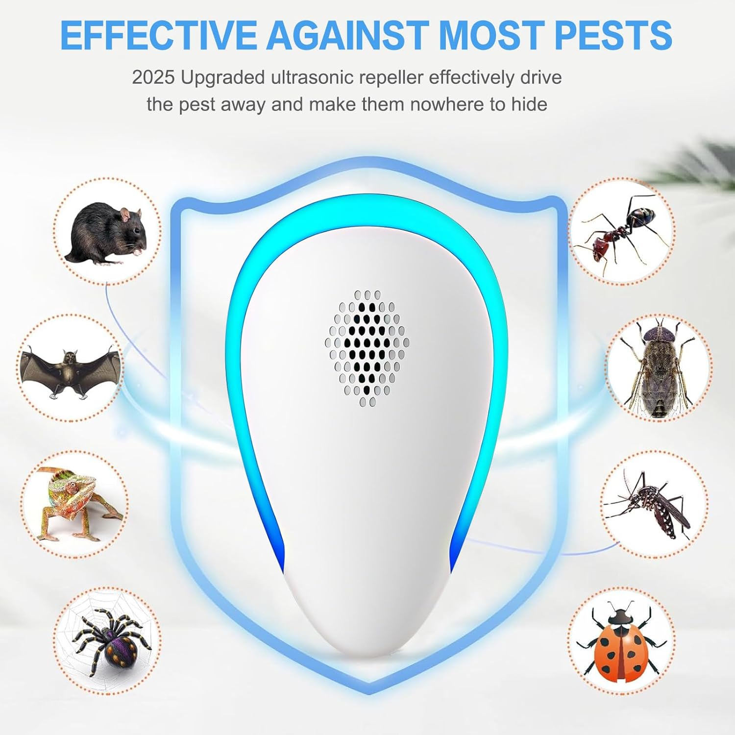 peut anti-insectes, anti-souris, anti-moustiques, anti-guêpes, anti- fourmis, anti- araignées, anti-boule, anti-insectes, etc. Prise Anti Moustique Ultrason, Répulsif Ultrason Anti Moustiqueé, Ultrason Souris et Rat, Anti Les ultrasons repoussent uniquement les parasites et les rongeurs et ne causent aucun dommage aux humains ou aux animaux domestiques. Spécifications du produit: Matériel: ABS Couleur: Blanche Puissance: 4-6W Tension d'entrée: 90V ~ 250V Fréquence ultrasonique: 22-65 KHz Technologie du produit: Ultrasound + Sawtooth Wave Le forfait comprend: 6 * Répulsifs à ultrasons 【Technologie d'échographie】Le répulsif à ultrasons adoptant la dernière puce double, peut émettre des ultrasons puissants, perturbent efficacement l'ouïe et le système nerveux des nuisibles comme les souris, les rats, les araignées, les mouches, les cafards, les fourmis, les moustiques et plus encore, les rendant mal à l'aise et s'enfuyant progressivement. Anti Souris Ultrason Ultrason Souris Et Rats Lot De 6 - Repulsif Ultrason Moustique - Répulsif Ultrason - Anti Anti Souris Rats Moustiques 【Facile à installer】il suffit de brancher l’amortisseur ultrasonique dans n’importe quelle prise pour l’utiliser. 【Silencieux et économe en énergie】Ultrason Anti Moustique utilise l'original des ultrasons à basse fréquence pour repousser les parasites, il ne fera pas de bruit pendant l'utilisation. Ensuite, lorsque la lumière est allumée, la machine commence à fonctionner, sans nécessiter de manipulation complexe. Il suffit de brancher notre répulsif à ultrasons dans une prise., Remarque: 1., Anti-moustique électronique Éloignez-vous des tapis, des rideaux et de tout matériau qui absorbe le son qui peut affecter l'effet., 2., Si vous avez mentionné des insectes ou des hamsters comme animal de compagnie, n'utilisez pas cet anticorps de souris près de vos animaux de compagnie., 3., Il est normal que la souris et les parasites augmentent au début des jours d'utilisation, car ils s'éloigneront du lieu de vie après que les animaux auront été attaqués par ultrasons., 4., L'effet du produit peut être mis en évidence après une utilisation constante pendant une période de 3 à 4 semaines.