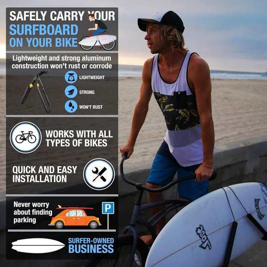 Protection fiable : gardez votre planche de surf en toute sécurité et intacte avec notre porte-bagages de vélo de surf de qualité supérieure. Que ce soit pour des canoas, kayak, surf ou windsurf, trouvez le produit CRUZ pour transporter votre équipe avec sécurité, stabilité, comfort et facilement Surf Board Bicycle Carrier Rack - Bike Surf Board Carrier | Installation et retrait faciles d'étagères de surf de conduite sûres aussi bien pour les planches de surf à court de Ce rack de planche de surf de vélo offre une solution abordable pour les surfeurs qui veulent transporter leurs cartes sans problème. Le bonus ajouté ? Le démontage sans effort rend le transport et le stockage un jeu d'enfant, pas besoin de stress., Naviguez sur. Avec sa fonction à libération rapide, l'assemblage est sans outils. Ajustement parfait : s'adaptant parfaitement à différentes tailles et styles de planche de surf, ce rack supporte les deux planches de surf à bord shortboard, assurant un ajustement parfait pour les besoins de chaque surfeur. Installation sans effort : simplifiez votre vie avec notre rack de vélo de surf. Découvrez un moyen facile et durable de vous rendre à votre spot de surf préféré. Notre porte-vélo pour planche de surf convient à toute planche d'environ 7'0'' ou plus petite Il est pour un transport et un rangement faciles, vous donnant la tranquillité d'esprit en sachant que votre table est sûre et sûre. Support de Planche de Surf pour Vélos en Alliage d'Aluminium Support Planche De Surf Velo Porte-vélos Pour Planche De Surf Porte-vélo Pour Planche De Surf Porte Velo Pour Planche De Surf Le Noir 92364801 Support Surf Ajustable Montage Rapide Fabriqué en alliage d'aluminium et mousse, il est construit pour défier les conditions extérieures les plus robustes, assurant une protection durable contre la rouille et les . Dimensions de l'emballage : environ 40 x 20 x 7 cm. (La taille du produit en fonction de l'image peut être) Matériau du produit : alliage d'aluminium. Transport de l'espace : emportez sans effort votre table avec ce rack de surf pour vélo. Économisez de l'espace pendant que vous faites du vélo avec ses designs sans solution de continuité.