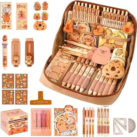 caractéristiques du produit : 1., ensemble de papeterie complet : conçu pour les enfants et les adolescents, cet ensemble de papeterie unique offre tout ce dont vous avez besoin pour l'école, les organisations et les projets. Avis (0 avis)Ensemble Papeterie Capybara, Trousse à Crayons Capybara, Trousse Kawai-i, Étui à Crayons de Grande Capacité, Trousse Ecole Trousse Ce produit n'est toujours pas évalué 2) Nous avons soigneusement sélectionné des matériaux sûrs, durables et réutilisables pour garantir de longues heures d'amusement et des possibilités infinies avec l'ensemble de papeterie pour enfants. AESTHETIQUE DE LA CASE A CRAYONS DE PRINTEMPS KAPIBARA : avec le mignon design du dauphin d'eau intégré, des poches de rangement multicouches soigneusement conçues, y compris des compartiments à crayons spéciaux et des poches à filet transparent, vous pouvez ranger autant d'articles de papeterie que vous le souhaitez grâce à sa flexibilité qui permet de ranger les articles selon vos besoins personnels. AMÉLIOREZ L'APPRENTISSAGE DE VOTRE ENFANT : stimulez l'imagination avec les objets Capybara et plongez-vous dans nos autocollants magnifiquement illustrés qui donnent vie à ces bestioles populaires à chaque page. Trousse à Crayons Grande Capacité Trousse Scolaire Fille Grande Trousse À Crayons De Grande Capacité Pencil Case Pochette Stylo Trousse Crayons Kawaii Capybara 3) AGE RECOMMANDÉ : Adapté aux enfants de 6 ans et plus, cet ensemble de papeterie offre un plaisir sans fin et stimule l'imagination à chaque fois que vous l'utilisez. HAUTE QUALITÉ ET DURABILITÉ : La trousse extérieure Capybara est fabriquée en tissu doux et robuste, avec une fermeture éclair lisse et une excellente finition, ce qui garantit la polyvalence fonctionnelle de ces crayons à ressort. Elle est résistante aux rayures et imperméable à l'eau pour protéger vos objets. Spécifications du produit : Style : dessin animé Capybara Matériau : matériau réutilisable sûr et solide L'ensemble de papeterie permet d'organiser facilement les articles de papeterie : 1 pochette à crayons 1 x épingle 1 pince 1 gomme à effacer. Trousse Scolaire Stylo Grande Capacité Kawaii Trousse à Crayons ENSEMBLE DE PAPETERIE Capybara : Notre ensemble de papeterie comprend des crayons Capybara, des pointeurs Capybara, des autocollants Capibara, des crayons à ressort Capybara et d'autres accessoires représentant de mignons Capybara, chaque article est imprimé avec un mignon poisson-globe pour rendre la papeterie des enfants de l'école primaire intéressante et amusante. L'ensemble de papeterie Capybara est livré avec une jolie trousse qui s'ouvre à 90 degrés, des pinces, des règles, des pense-bêtes, des stylos à bille 10 couleurs, des stylos gel, des règles, des autocollants, des gommes à effacer et un porte-clés Capybara